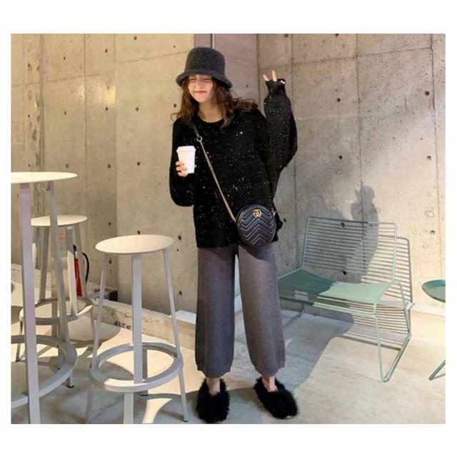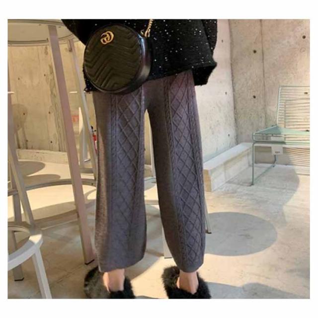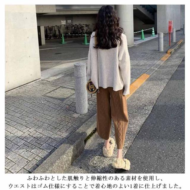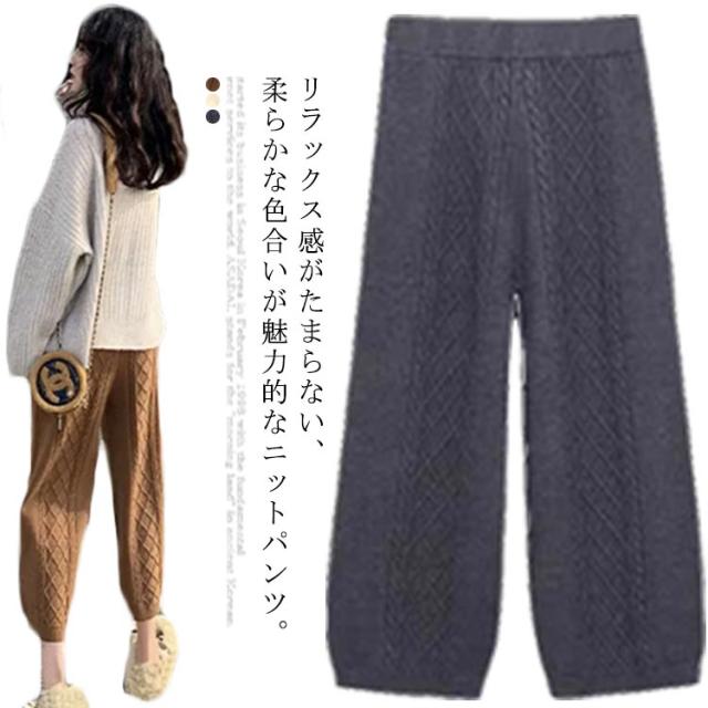 【送料無料】ニットパンツ ロングパンツ レディース ワイドパンツ バック ケーブル編み 春 秋 冬 長ズボン ストレッチ ハイウエスト ウエストゴム ストレート きれいめ 着?せ 体型カバー 裏起毛 トレンド 大人 かわいい ベージュ 茶色