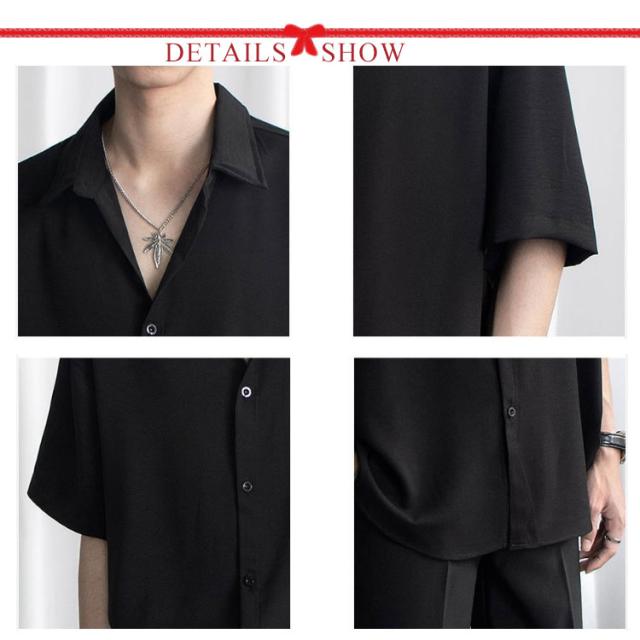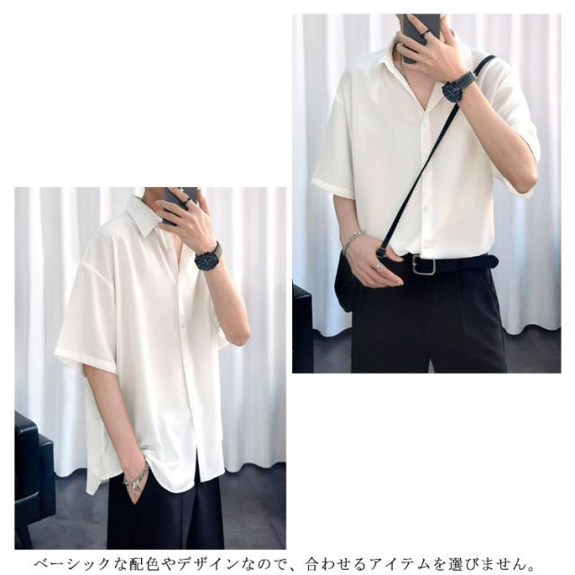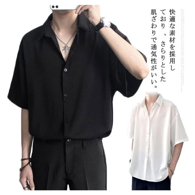 【送料無料】冷感シャツ 涼しい メンズ 半袖シャツ 五分袖 シャツ 開襟シャツ 半袖 韓国 人気 ファッション 春服 春 春夏 メンズファッション シンプル 無地 カジュアルシャツ ブラック ホワイト おしゃれ とろみシャツ