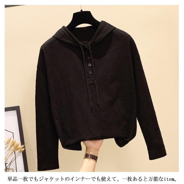 トップス tシャツ フード付き 長袖tシャツ カットソー フード付きtシャツ レディース パーカー 夏用 春用 トップス シンプル 無地 綿 お洒落 可愛い