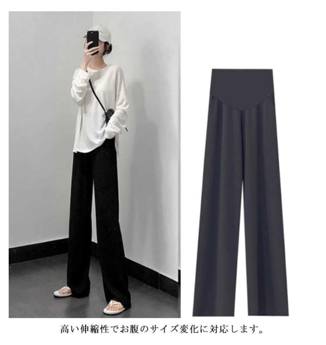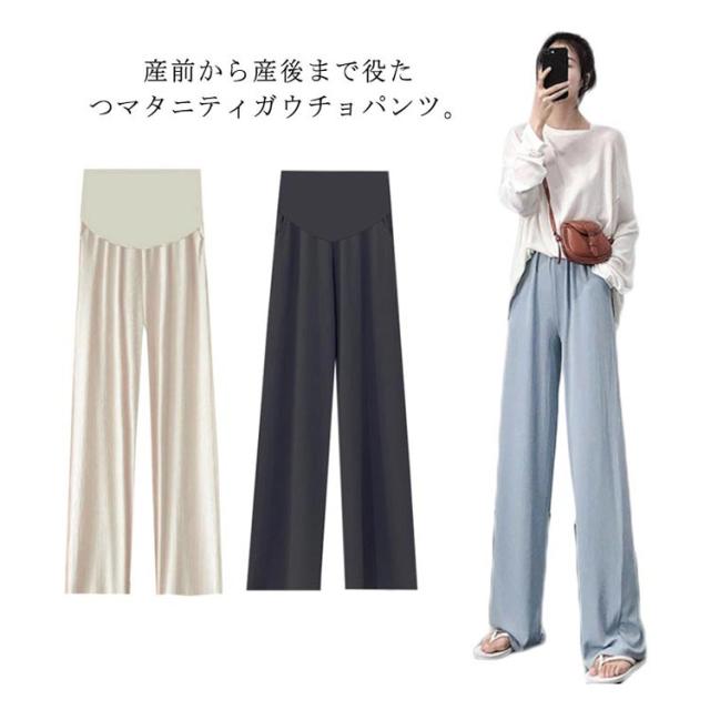 接触冷感 マタニティパンツ マタニティ ワイドパンツ マタニティワイドパンツ レディース ロングパンツ 妊婦 リブ ストレッチ ガウチョパンツ ガウチョ 薄手 美脚 脚長 マタニティウエア ボトムス 春夏送料無料