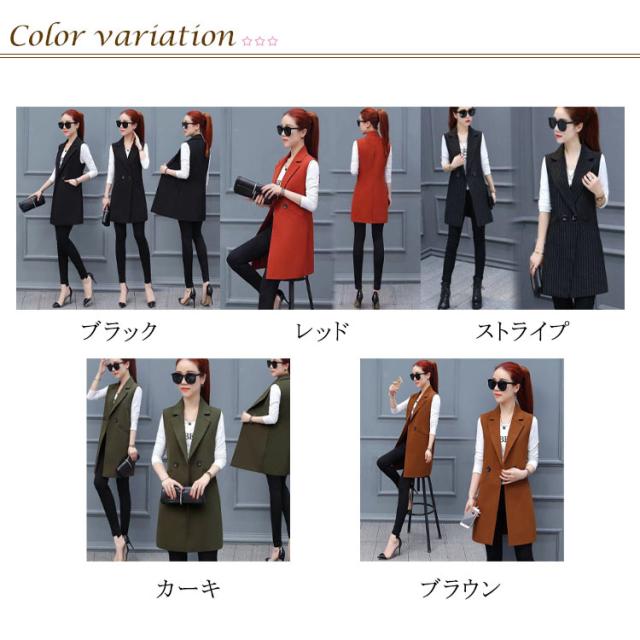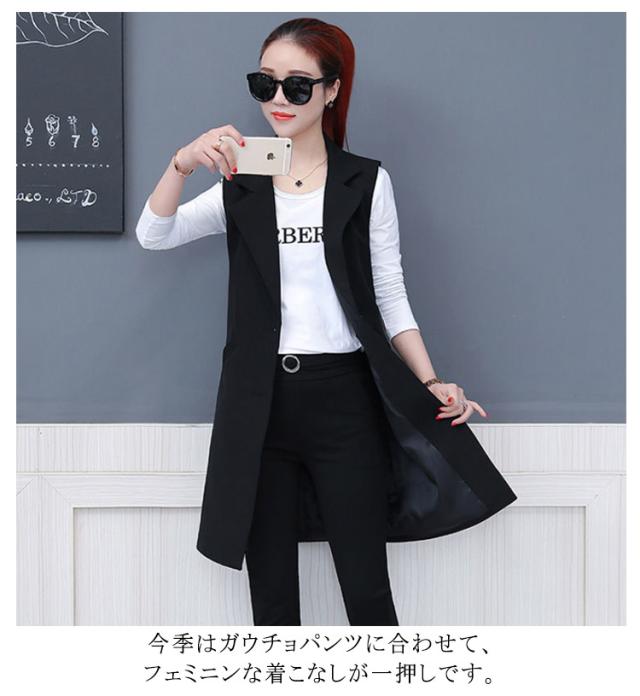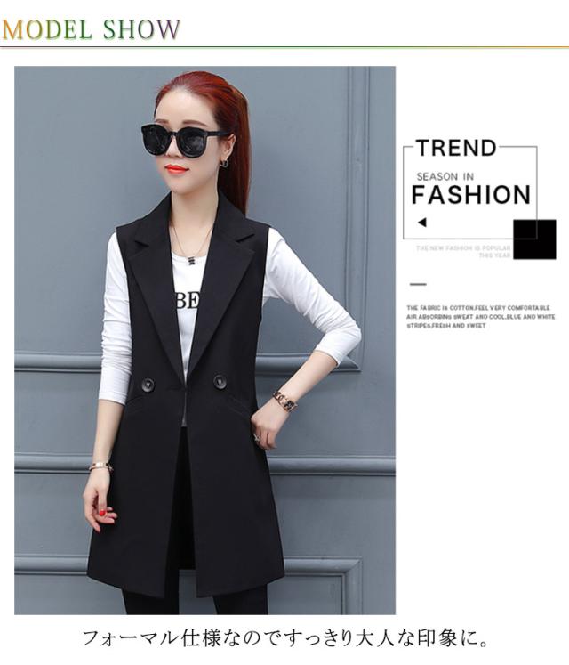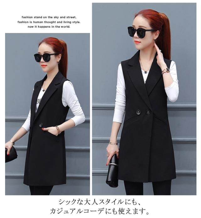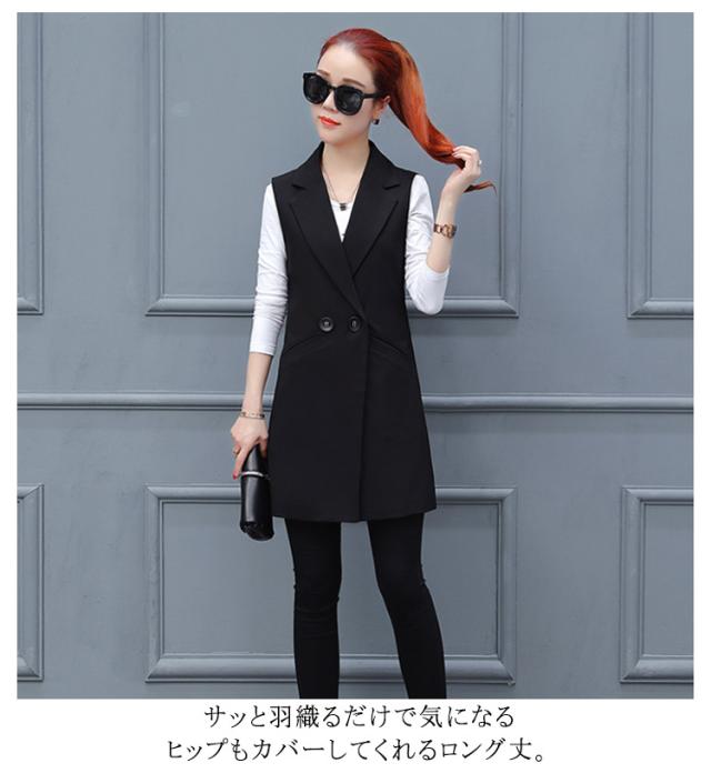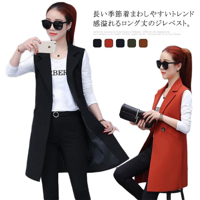 レディース 前開き ジレベスト ロングベスト ロングジレ スーツベスト ノースリーブ トップス テーラードジレ トレンチベスト アウター 羽織 重ね着 レイヤード 無地 オフィス カジュアル 体型カバー 通勤