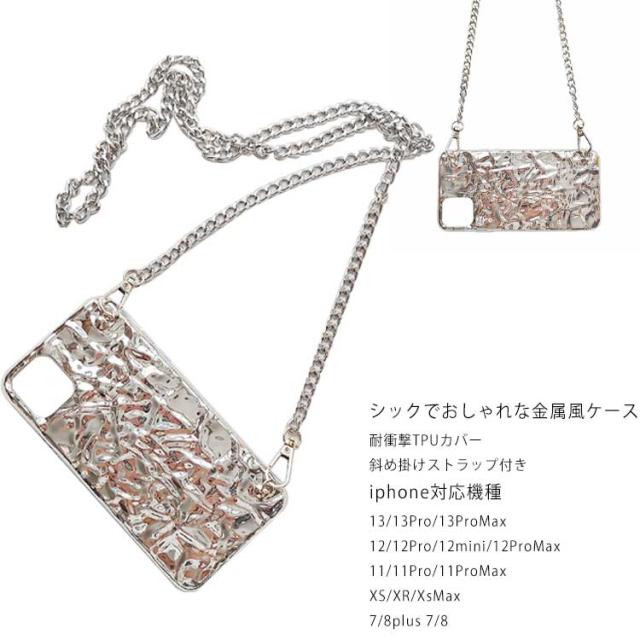 iPhoneケース iPhone 13 Pro Max ケース 金属風 メタル iPhone 11 12 Pro カバー ショルダー スト 送料無料 耐衝撃 XS max XR 7 8 plus