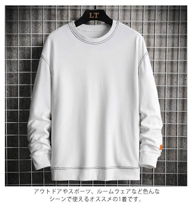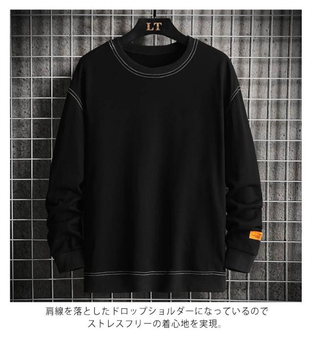 【送料無料】トレーナー 長袖 ビッグシルエット プルオーバー カットソー tシャツ トップス インナー パーカー クルーネック 無地 ドロップショルダー ゆったり 体型カバー 裾リブ ルームウェア 部屋着