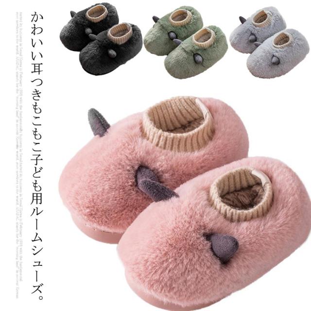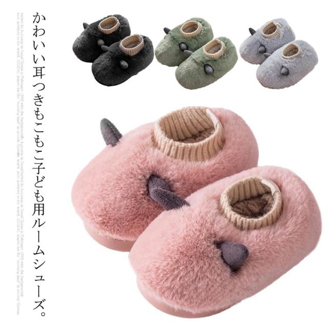 子供スリッパ 男の子 女の子 ベビー用 秋冬 キッズスリッパ ルームシューズ 耳つき かわいい もこもこ ふわふわ ボア 暖かい 軽量 滑り止め 室内履き 可愛い 室内用 洗える 子供靴 クリスマス 七五三 誕生日