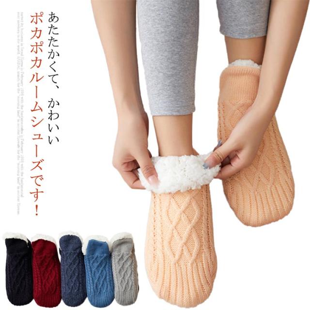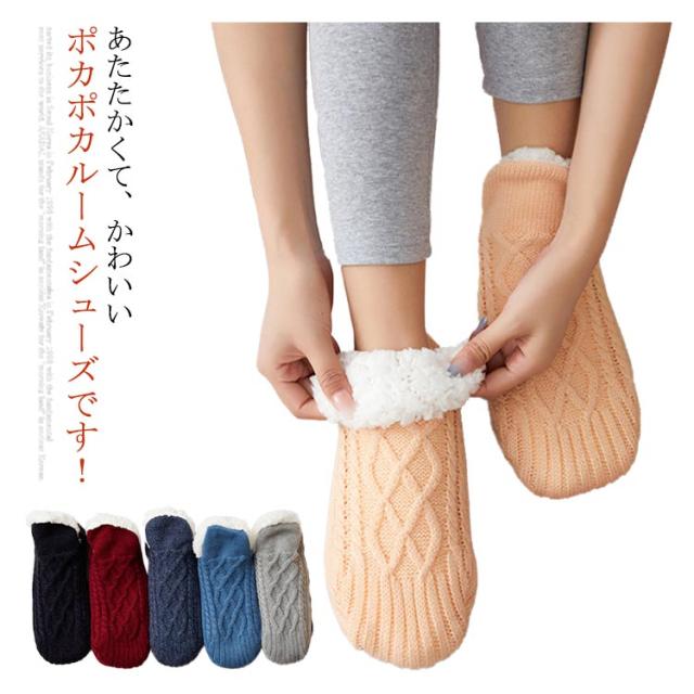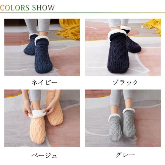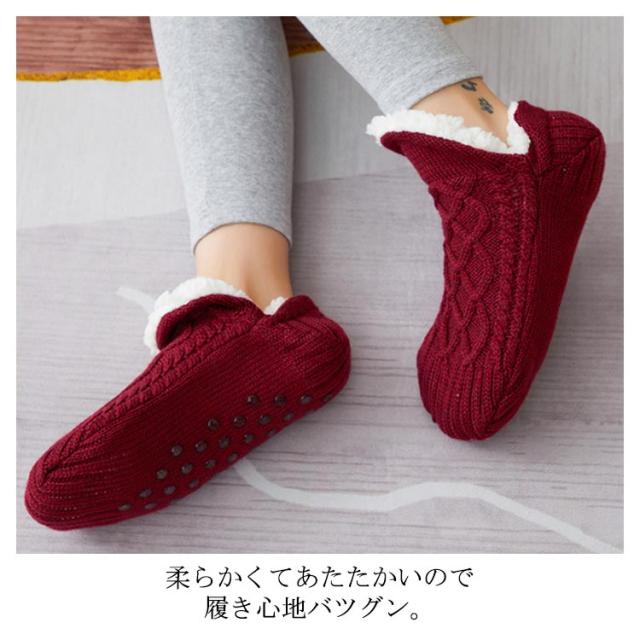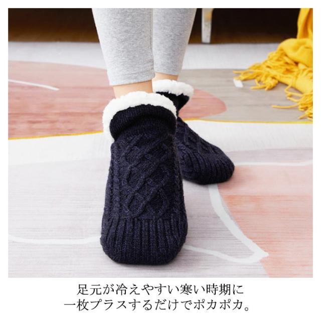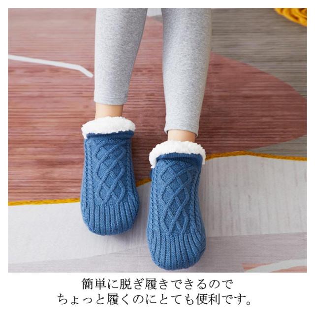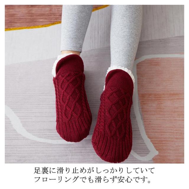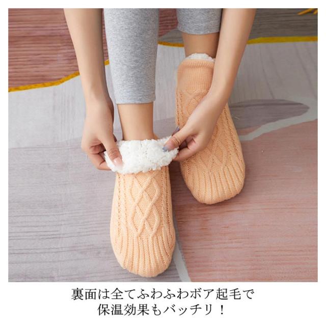 【送料無料】ルームソックス 靴下 ニット くるぶし ニットフットカバー もこもこ 裏ボア 厚手 防寒 秋 冬 滑り止め付き スリッパ 室内履き 足首 足元 冷え取り 暖かい あったかグッズ かわいい ファッション ナチュラル