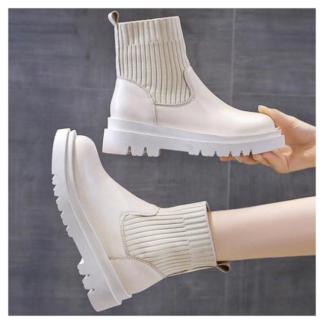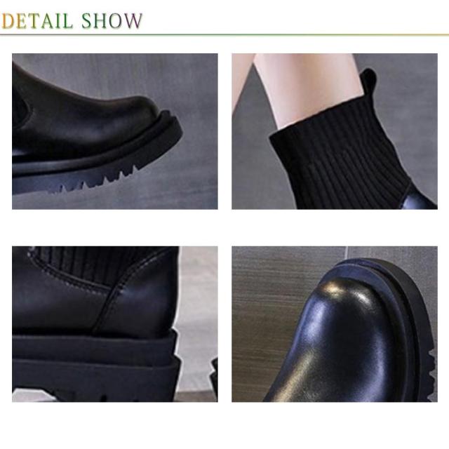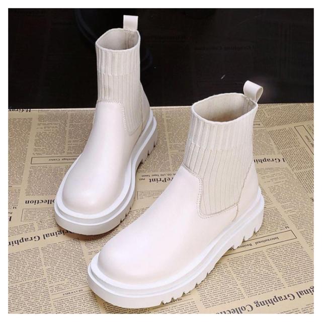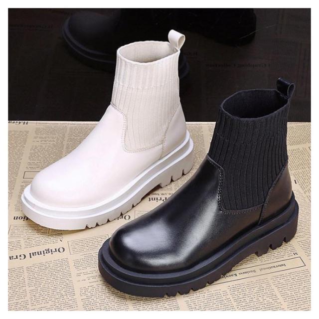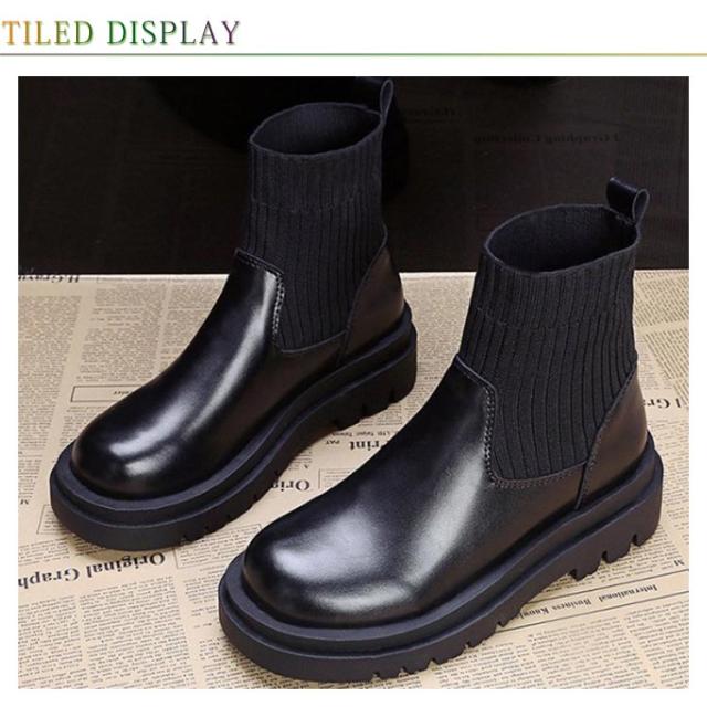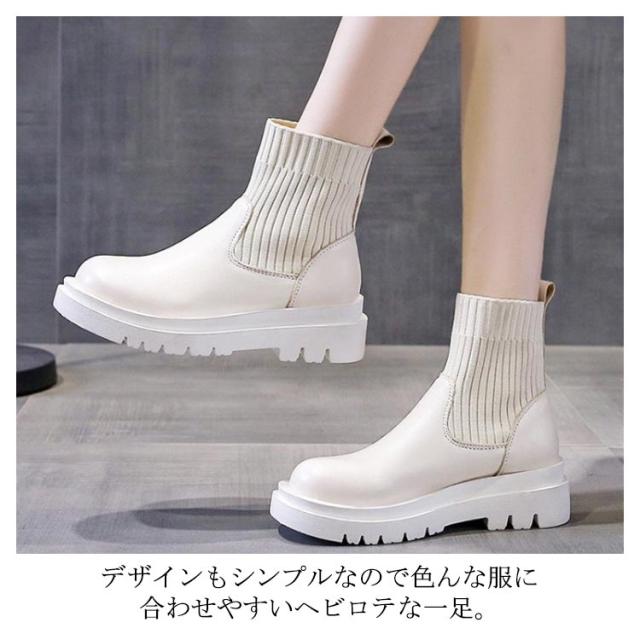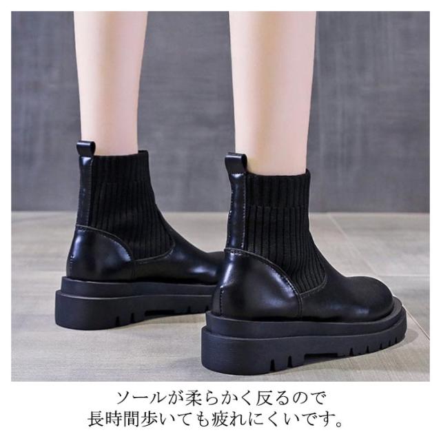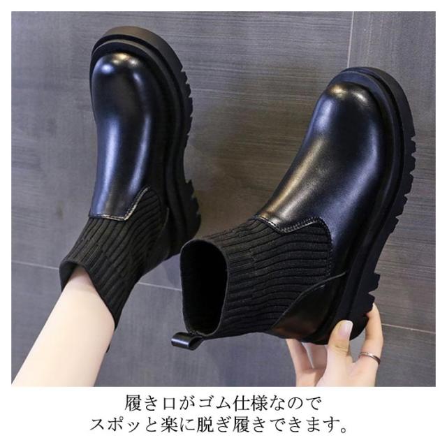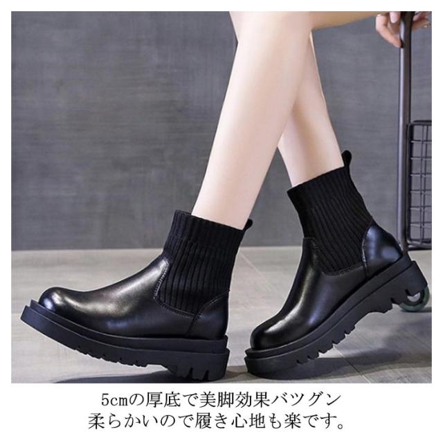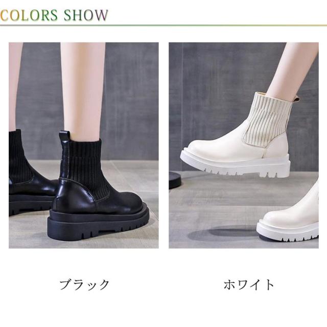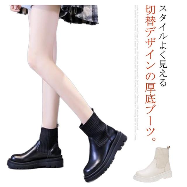 レディース アンクルブーツ 厚底 ヒール ゴム ニット 切り替え ドッキング ブーツ 靴 シューズ 軽量 厚底ブーツ 厚底靴 ショート丈 プラットフォーム 通勤 通学 おしゃれ 歩きやすい 履きやすい 大きいサイズ