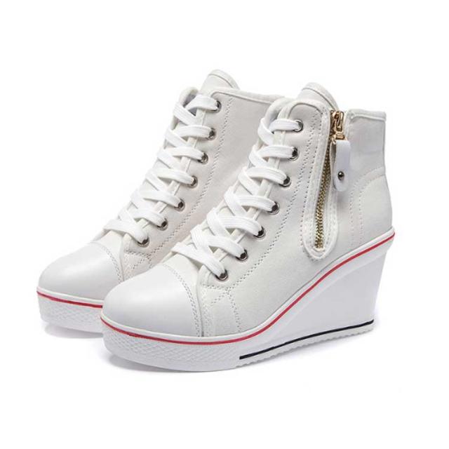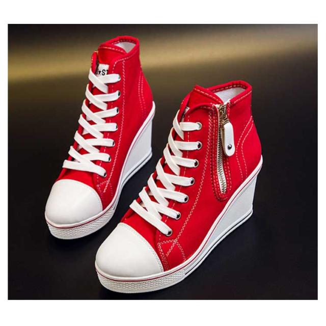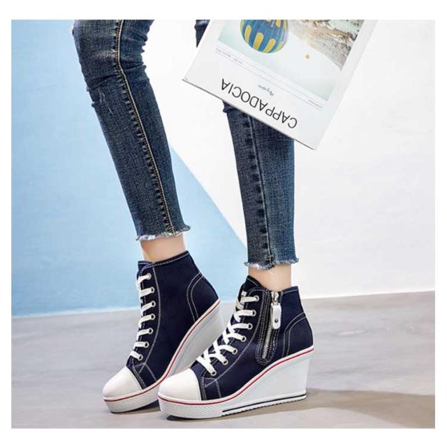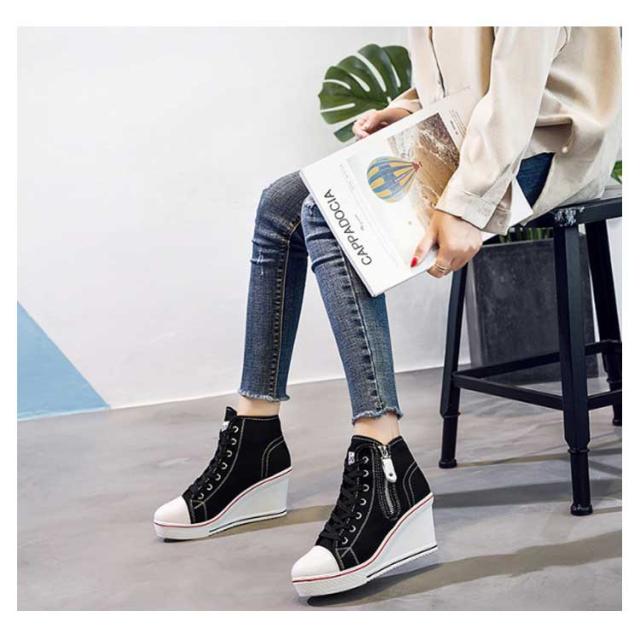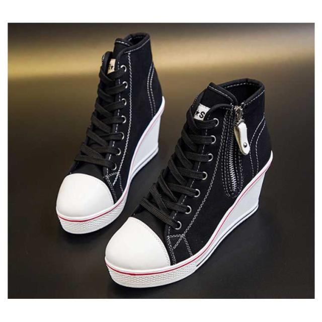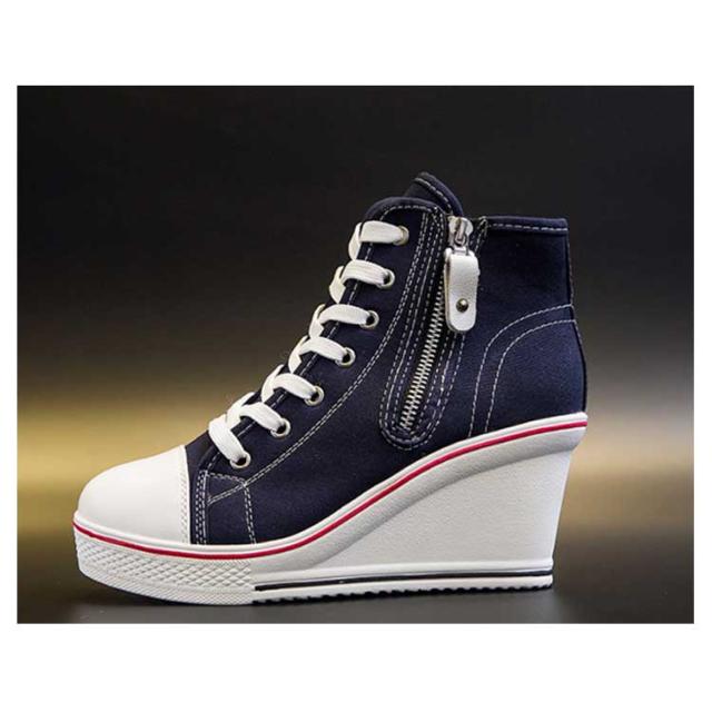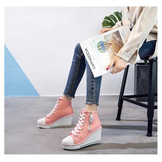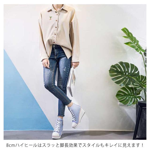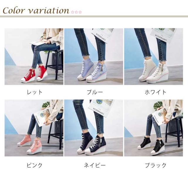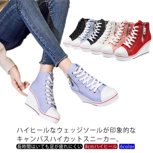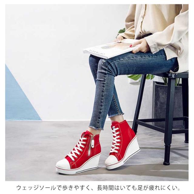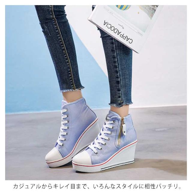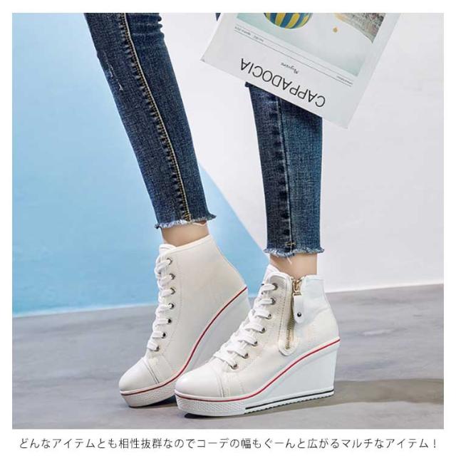 | ハイヒールなウェッジソールが印象的なキャンバスハイカットスニーカー。 ウェッジソールで歩きやすく、長時間はいても足が疲れにくい。 8cmハイヒールはスラッと脚長効果でスタイルもキレイに見えます! カジュアルからキレイ目まで、いろんなスタイルに相性バッチリ。 どんなアイテムとも相性抜群なのでコーデの幅もぐーんと広がるマルチなアイテム! | |