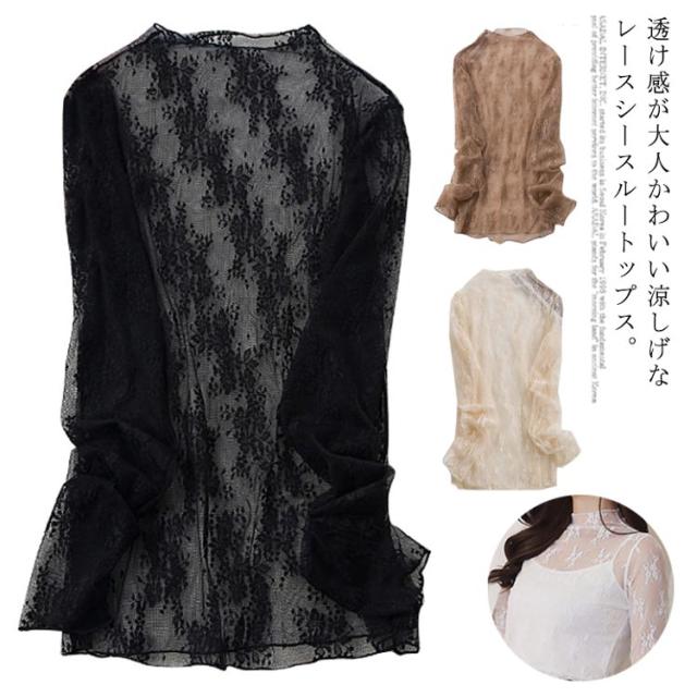 | お洒落女子が大注目♪レースシースルートップス。 薄手の生地で気楽に着用できます。 女性らしい肌みせとオシャレ度高まる大人っぽい一枚です。 | |