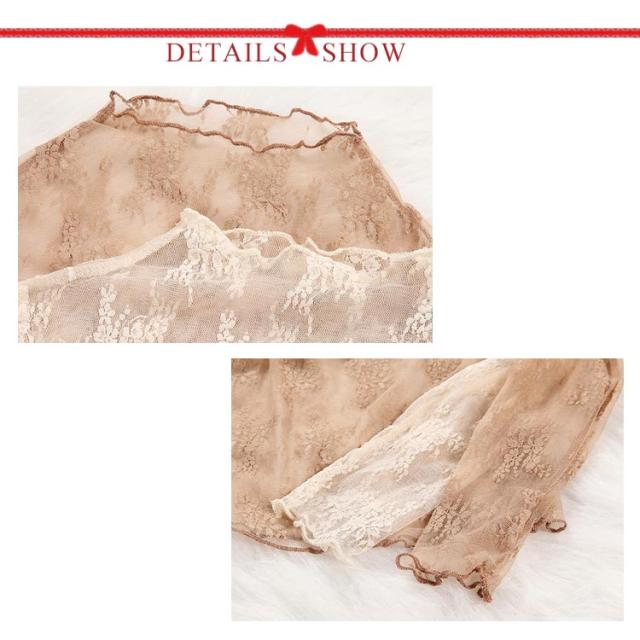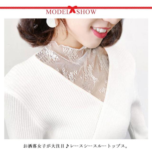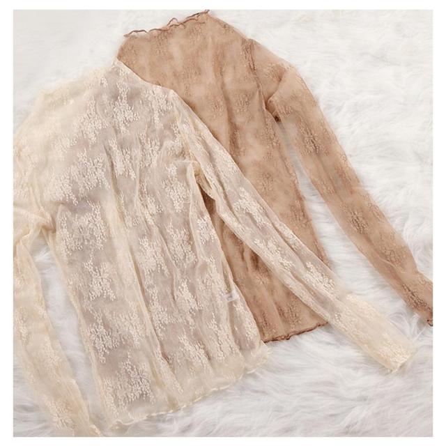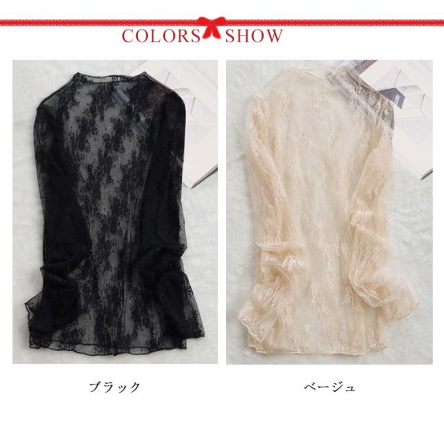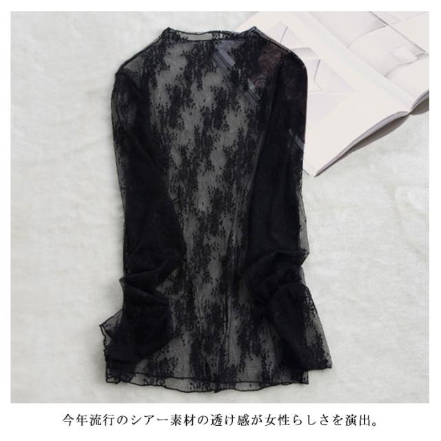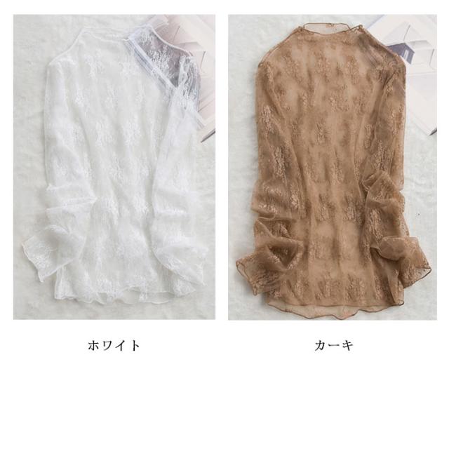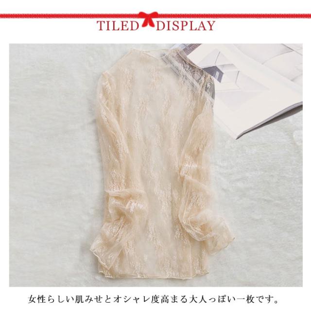 送料無料 レース トップス レディース ブラウス チュール シースルートップス 透け感 キレイめ 長袖 インナー 重ね着 レイヤード ハイネック 立ち襟 シアー シャツ カットソー 刺繍レース