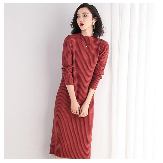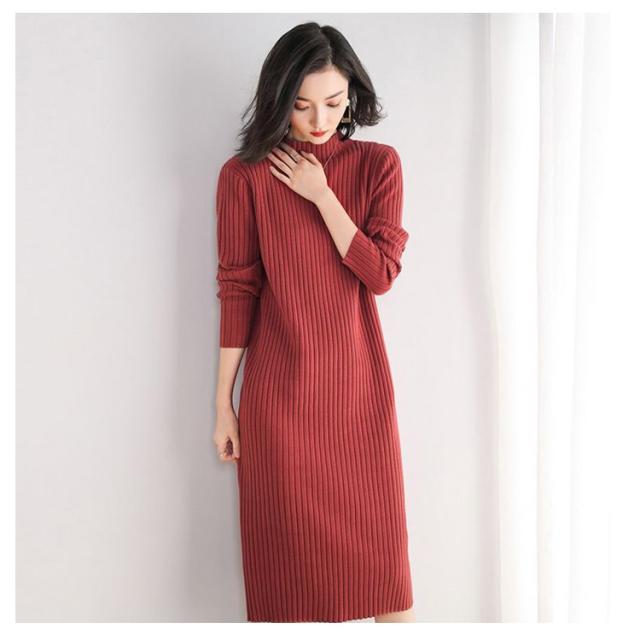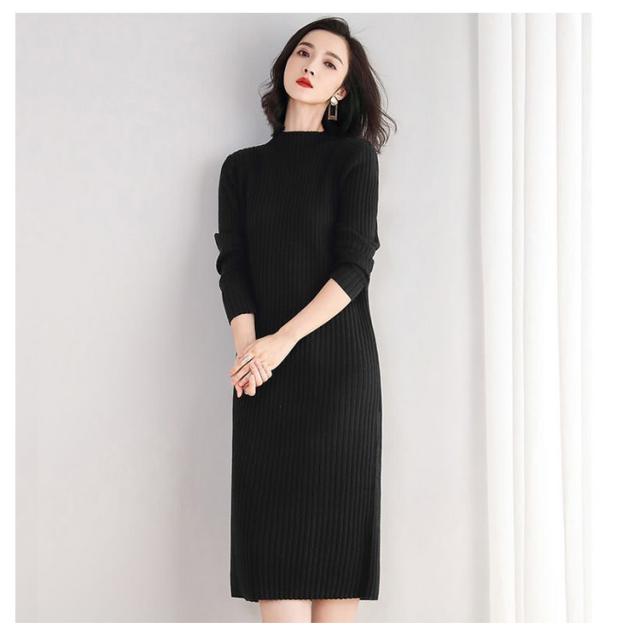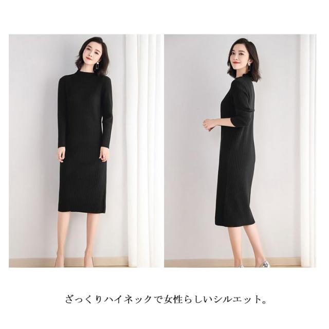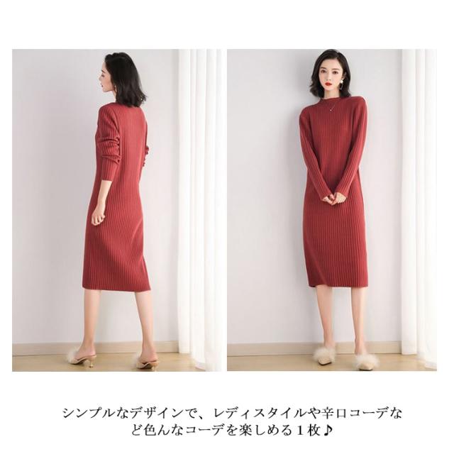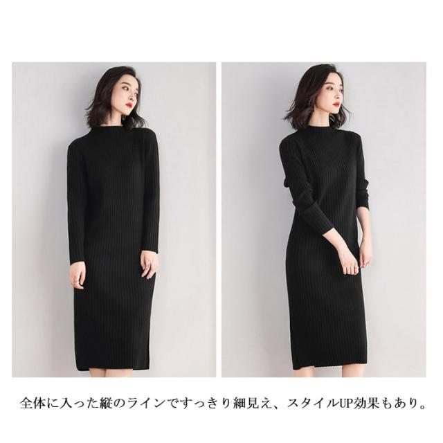 送料無料 ニットワンピース リブニット レディース ワンピース ロングワンピース ミモレ丈ワンピース 長袖 無地 タイトワンピース ハイネック タートルネック ロング丈 ストレッチ 着痩せ