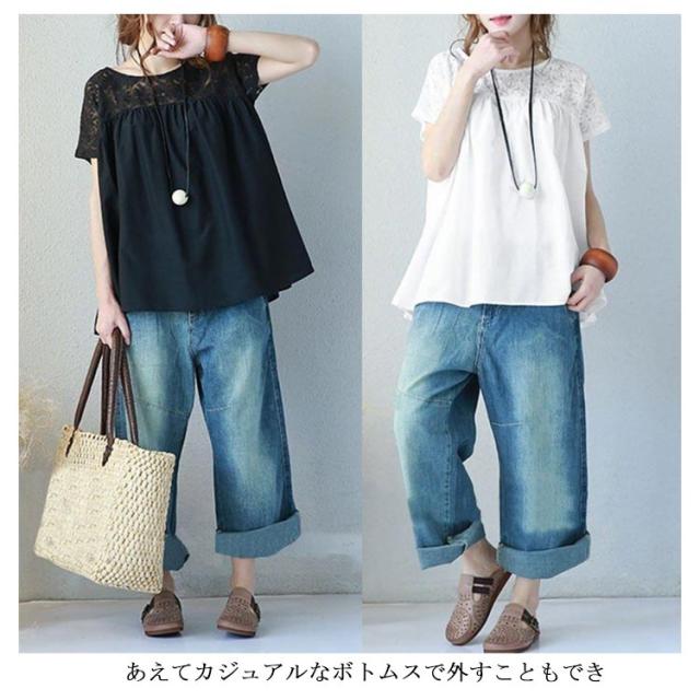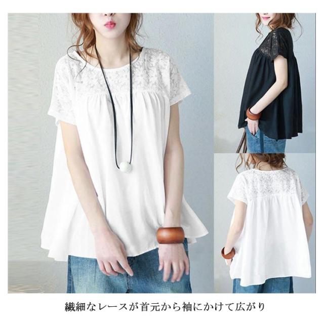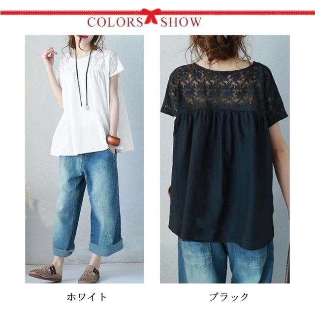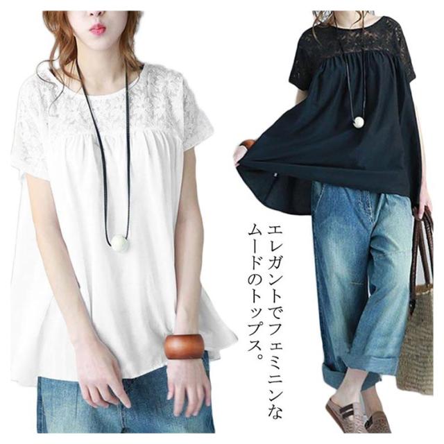 ブラウス レース 花柄 総レース トップス 刺? 半袖 フレア レディース 春 夏 透け感 ゆったり 薄手 ナチュラル 首詰まりネック Aライン ノースリーブ Tシャツ カットソー ゆったり