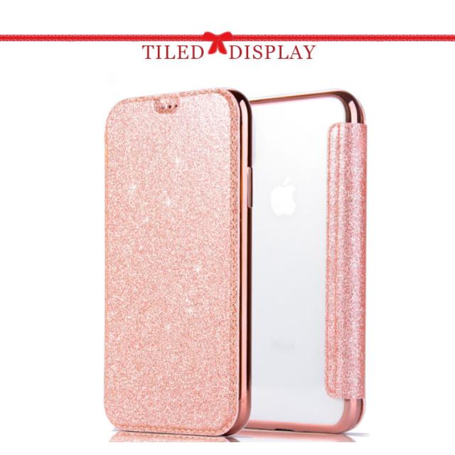 iphone12 ケース 手帳型 キラキラ 高級なPUレザー クリア スマホケース カードポケット カード入れ ICカード マグネット 透明 全機種 レディース おしゃれ かわいい 大人可愛い シンプル ラメ グリッター ピンク