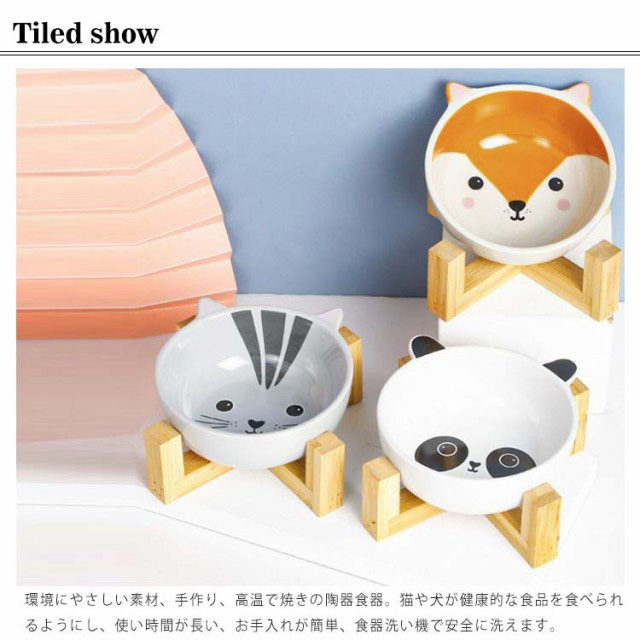 猫 ペット食器台 木製スタンド付き 北欧 陶器 テーブル 脚付き 高さ 食べやすい 皿 餌入れ 陶器 セラミック フードボウル ペット 食器 お水入れ 猫ボウル 犬 セット フードボール 給水 給食器 動物 パンダ柄 お皿 シンプル
