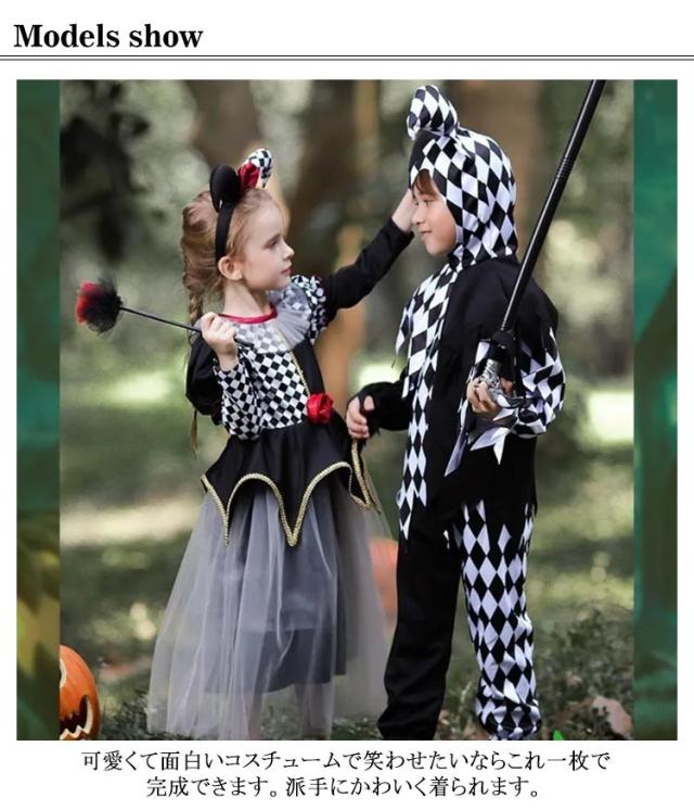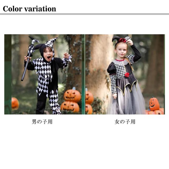 子供ハロウィン衣装 仮装 コスプレ ピエロ ジョーカー Joker サーカス 男の子 女の子 キッズ お揃い コスプレ ワンピース イベント コスチューム 変装 イベント 演出服 文化祭 コスチューム 100 110 120 130 140 150 160