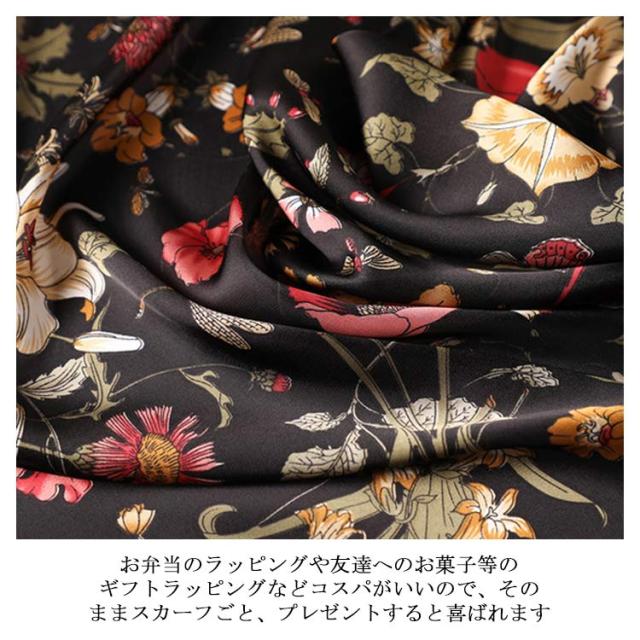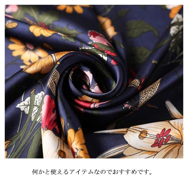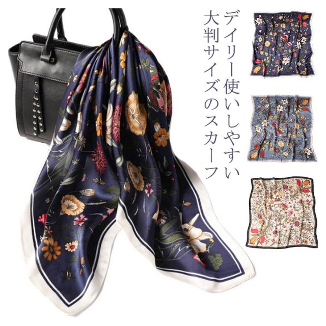 | デイリー使いしやすい大判サイズのスカーフ 光沢感のある柔らかな生地で、高見えするスカーフ。 普段のコーデにプラスするだけで上品でこなれた印象に。 首元やバッグ、ヘアアクセサリーとしてなど様々なアレンジが楽しめます。 お弁当のラッピングや友達へのお菓子等のギフトラッピングなどコスパがいいので、そのままスカーフごと、プレゼントすると喜ばれます。何かと使えるアイテムなのでおすすめです。 ◇コーディネート◇ シンプルコーデとの相性抜群な、巻くだけでこなれ感たっぷりなスタイルを演出できるアイテム。 ヘアアクセサリーやバッグアクセサリーとしてなど幅広いアイテムとのアレンジが楽しめます。 | |