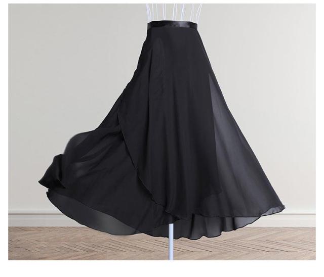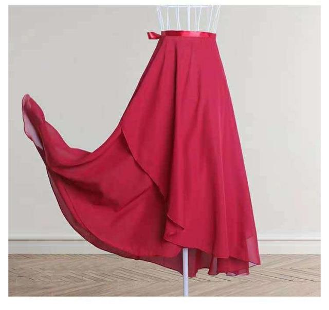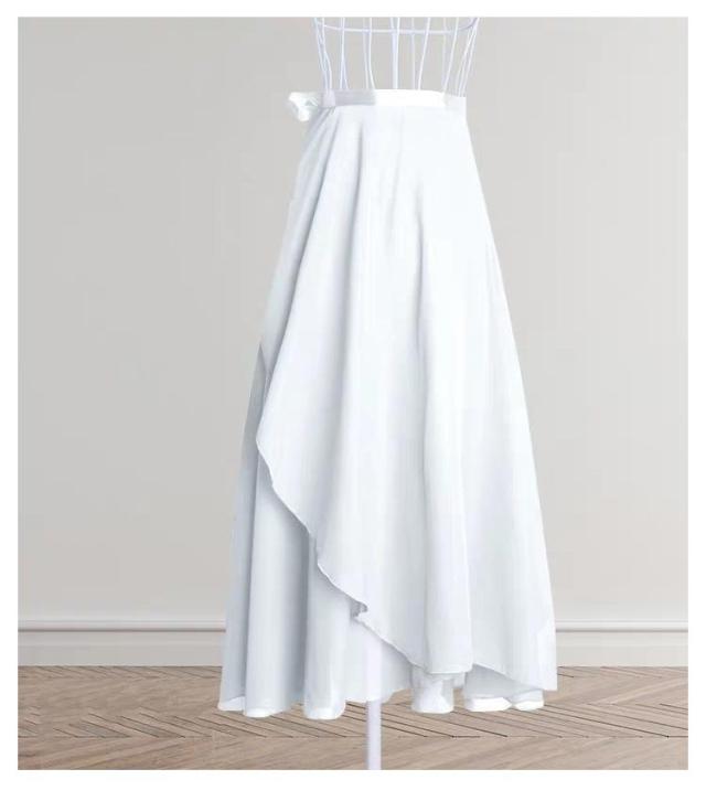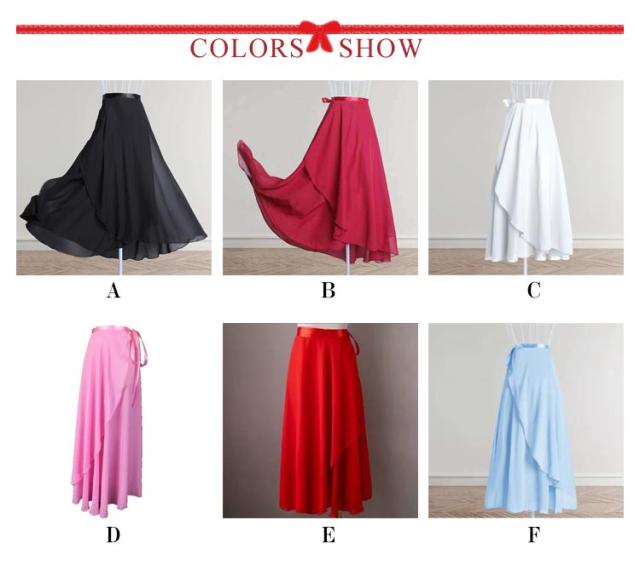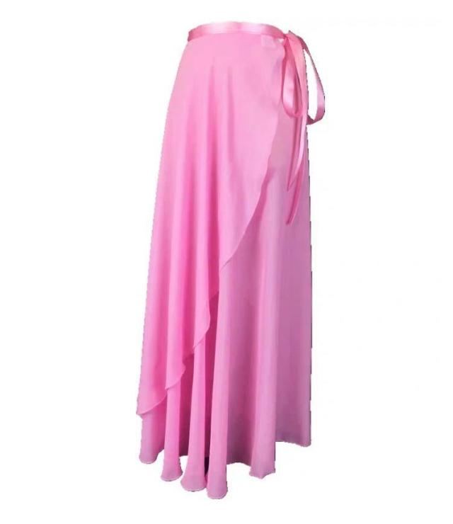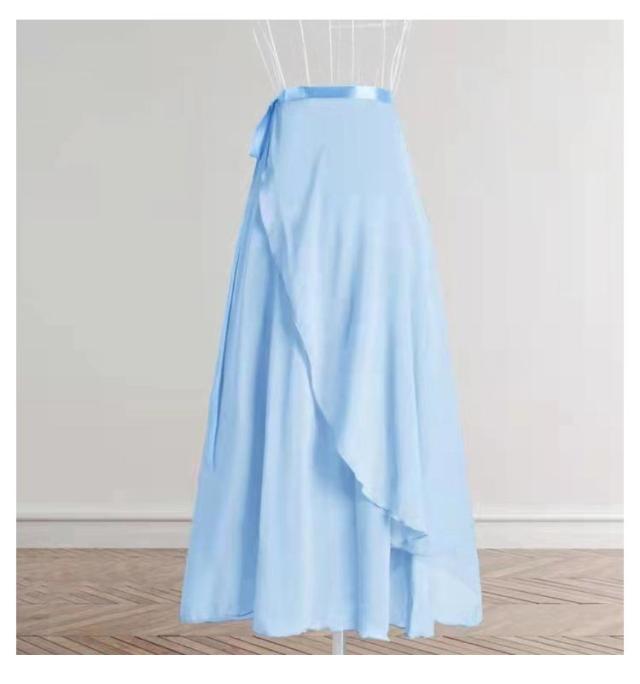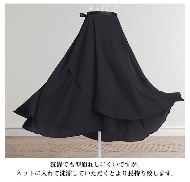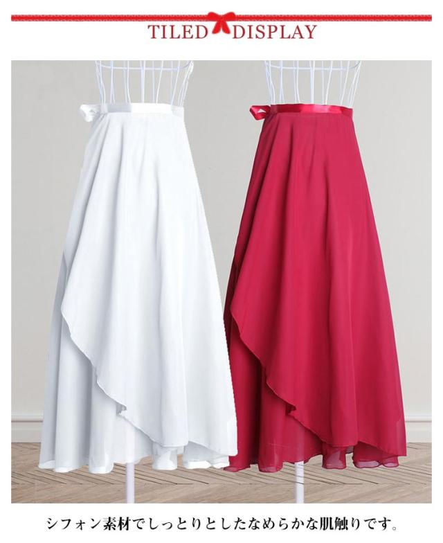 バレエ 巻きスカート 80cm丈 大人 ダンススカート 無地 ラップスカート ロング ミディアム ふんわり フリル 紐 ウエスト調整 ダンス 練習 仮装 演劇 新体操 送料無料