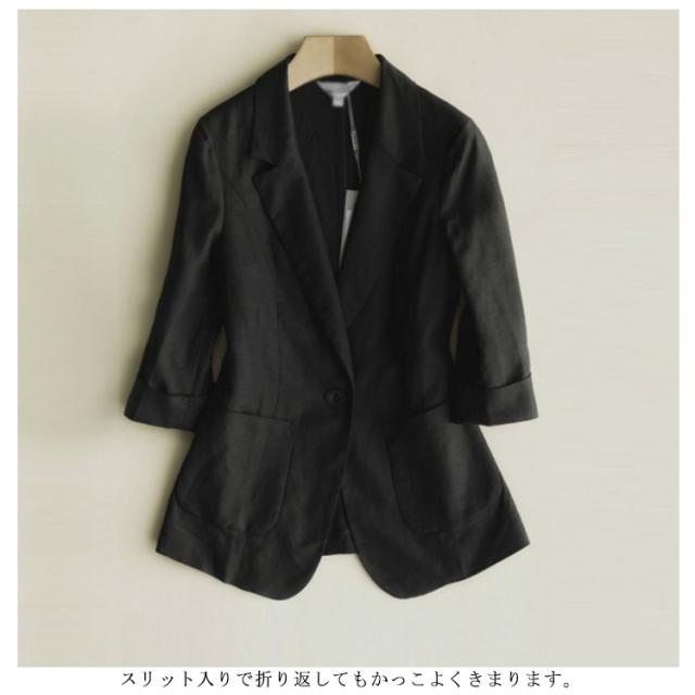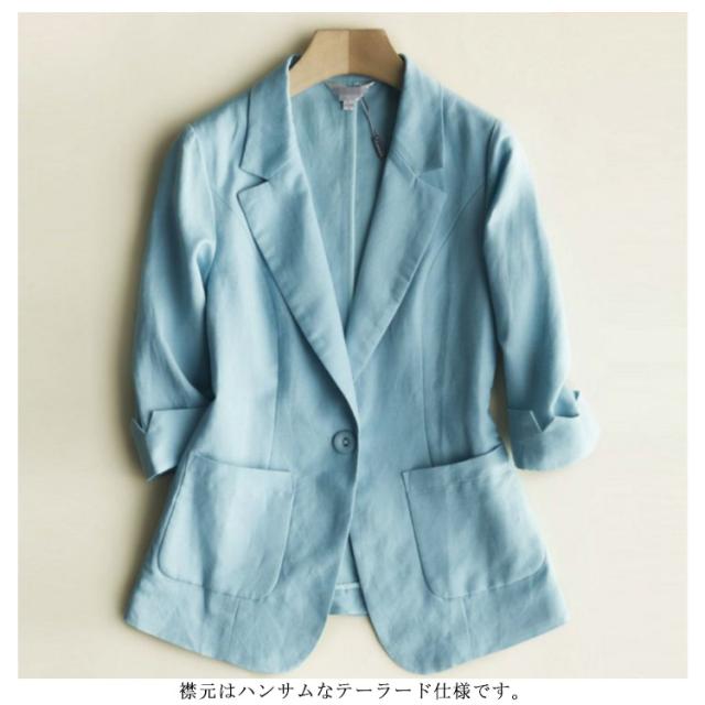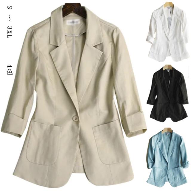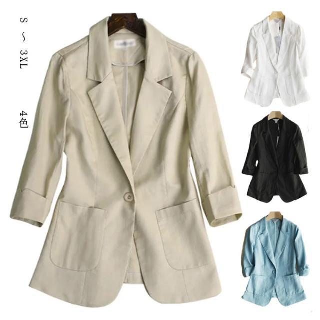 送料無料 サマージャケット リネンジャケット レディース サマースーツ 七分袖 ショート丈 綿混 綿麻混 コットンリネンジャケット 無地 フェミニン エレガント