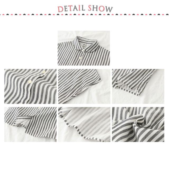 | スタイリッシュなストライプ柄ガーゼシャツです。 肩落ちのフレンチスリーブが腕をスッキリ見せてくれます。 丸襟のネックが素敵なブラウスです。 | |