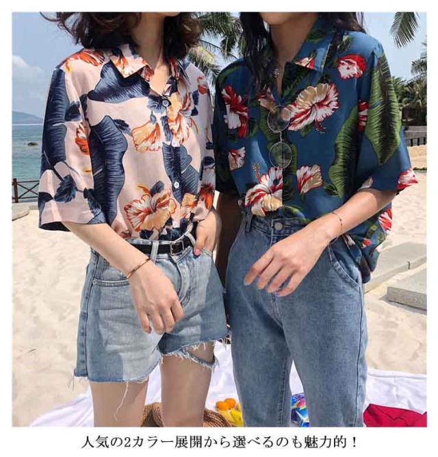 花柄シャツ 総柄ブラウス アロハシャツ アロハ 半袖シャツ 柄シャツ レディース 派手 カジュアル カワイイ 人気 トレンド トップス