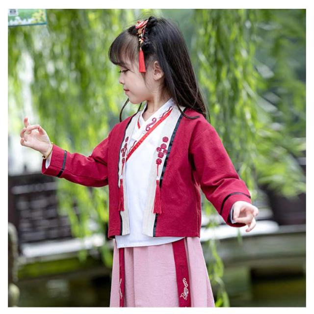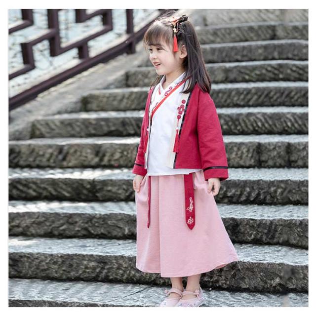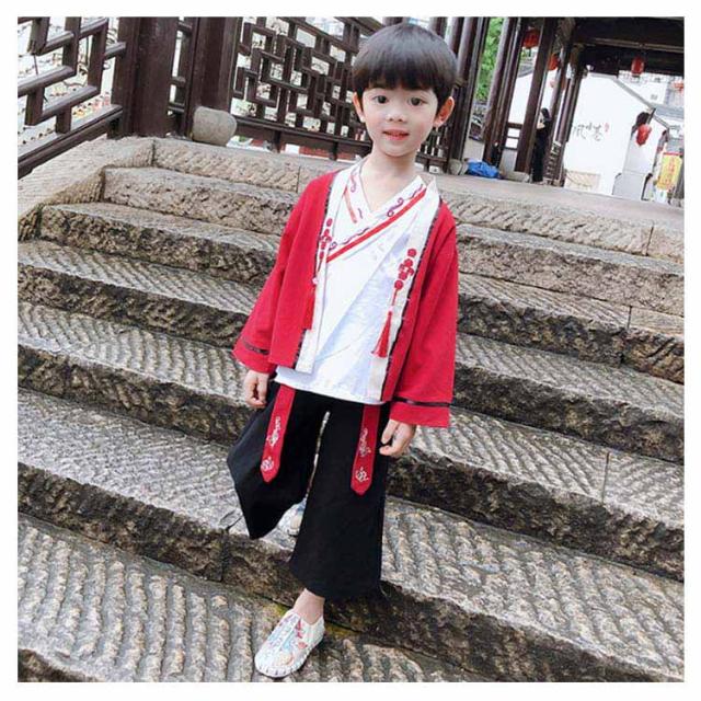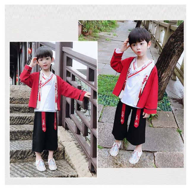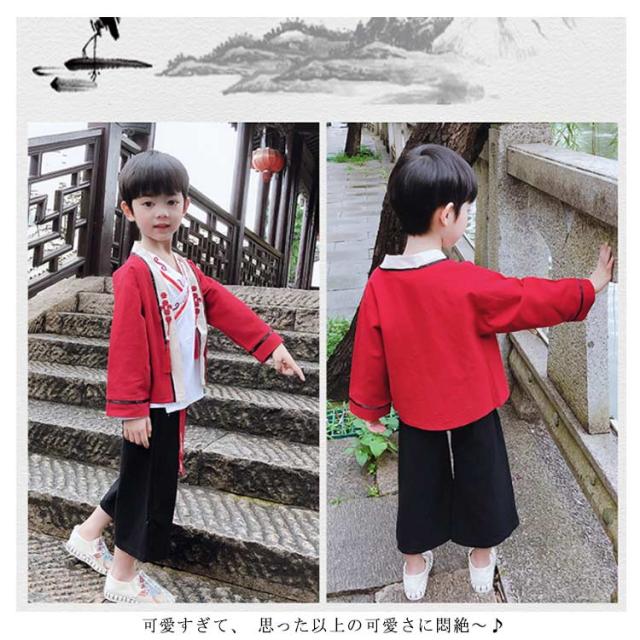 チャイナ服 キッズ 春秋 中華服 セットアップ 3点セット トップス+ワイドパンツ+インナーウエア コスプレ 演出服 上下セット 学園祭 文化祭 イベント 唐装漢服 子供 撮影 衣装 演出服 ハロウィン 舞台演出服