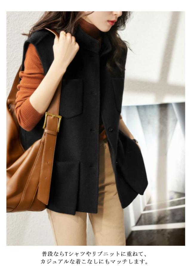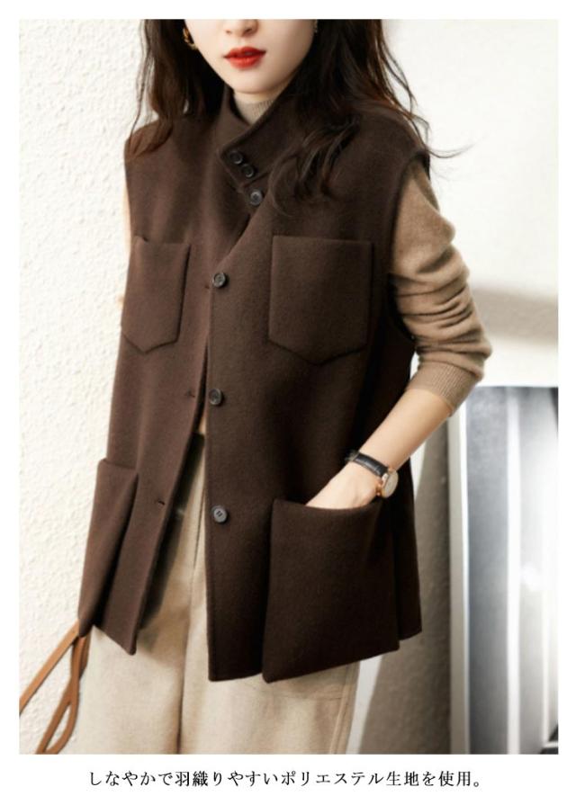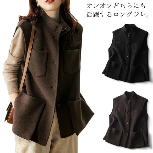 ベスト レディース ロング丈 ベスト ロングベスト 前開き ハイネック ノースリーブコート ポケット付き スリット入り ノースリーブ 春 トップス 大人 カジュアル 春秋冬 ゆったり ロング丈 無地 おしゃれ