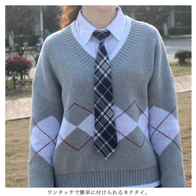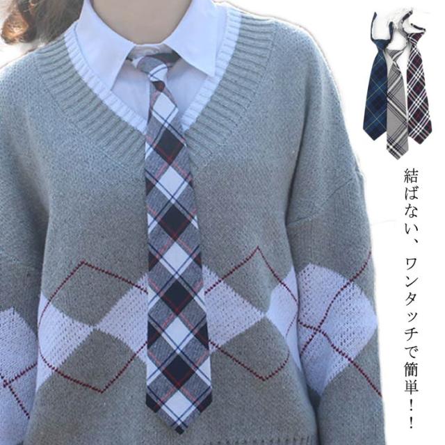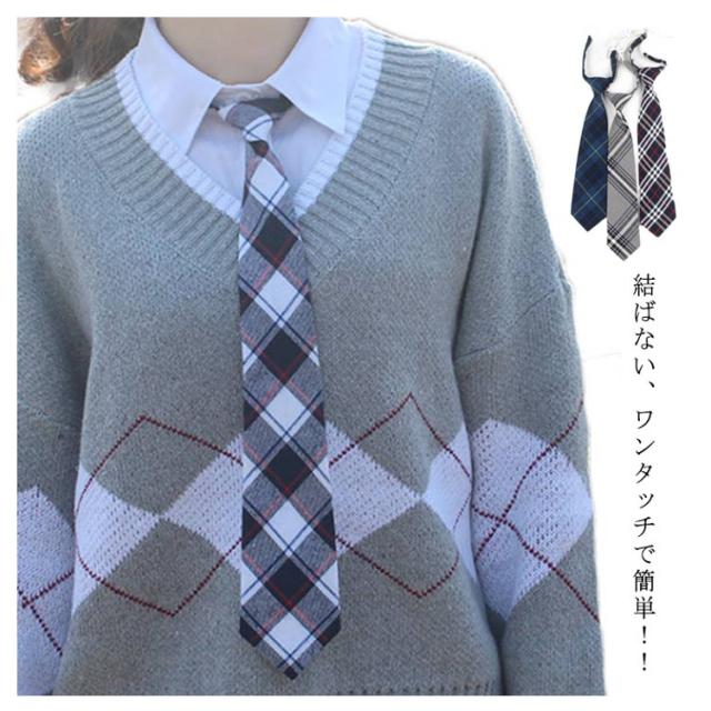 【2種類 全19色】ワンタッチネクタイ クイックネクタイ スクールネクタイ 女子高生 結ばない 簡単ネクタイ ジュニアネクタイ ストライプ ストライプ柄 チェック チェック柄 簡単ネクタイ コスプレ 可愛い 送料無料