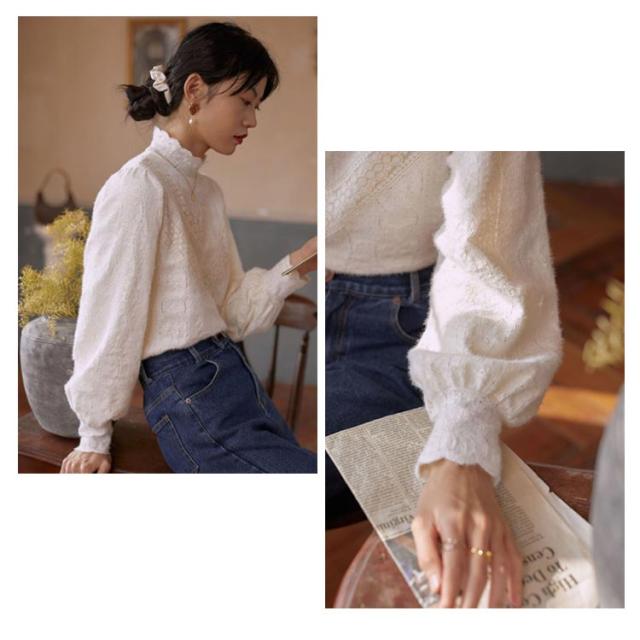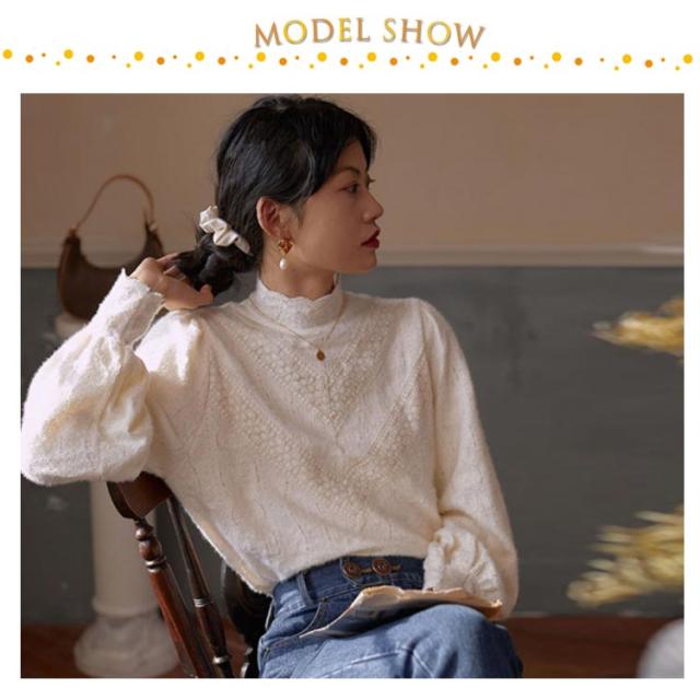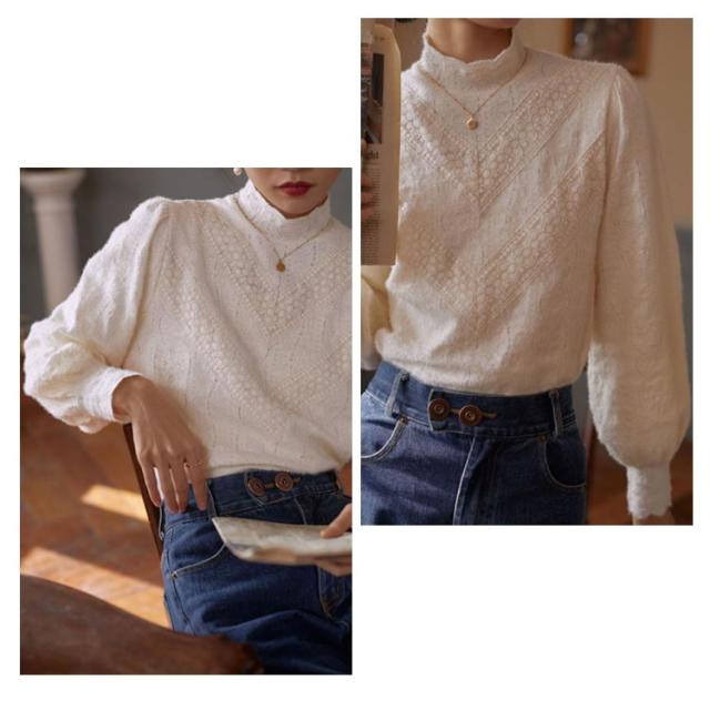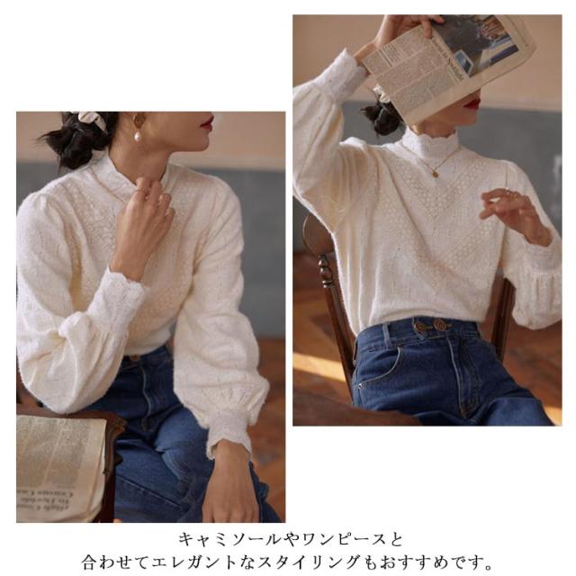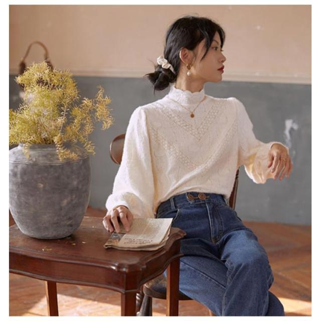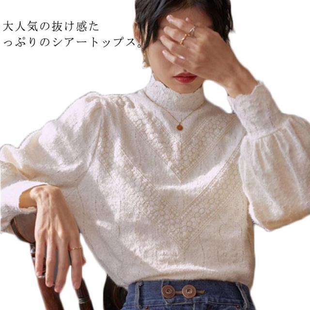 レース トップス 長袖 レディース ブラウス ハイネック レーストップス レイヤード レースインナー 長袖 総レース 重ね着 きれいめ 花柄