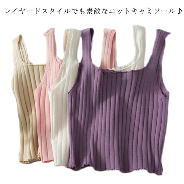 ニットキャミソール ニット トップス リボン ニットキャミ 重ね着 レイヤード インナー タンクトップ ノースリーブ 大人 ゆったり ゆとり 春 秋 夏 送料無料