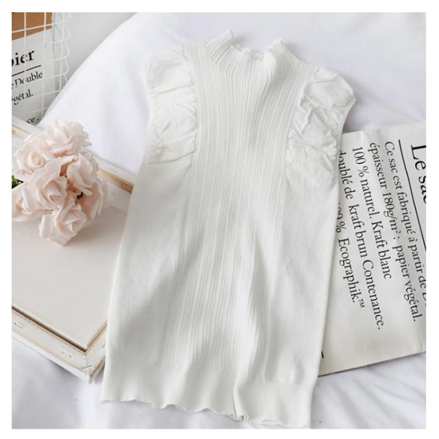 | アクリル素材が涼し気なノースリーブのニット。 スリムパンツやデニムだけでなく、ボトムスインしてワイドパンツ合わせもOK デイリーシーンからお出かけまで幅広く着回せる1枚です。 | |