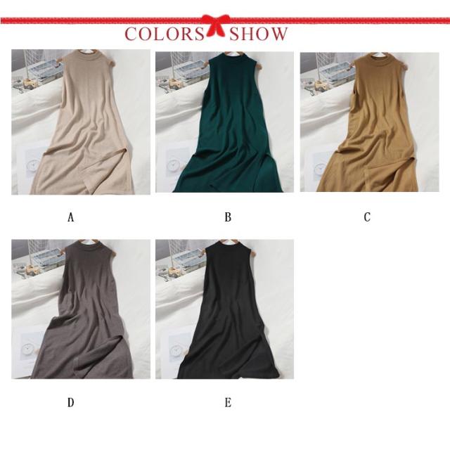 ニットワンピース ノースリーブ ロング丈 ニットベスト タートルネック スリット入り サマーニット ロング ミモレ 送料無料 ジャンパースカート タンクトップワンピース キャミソールワンピース ニットワンピ Aライン フレアワンピース