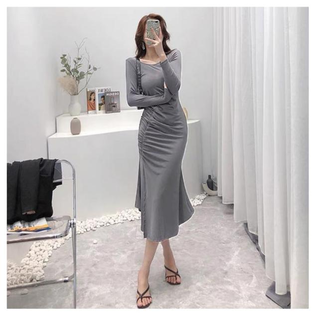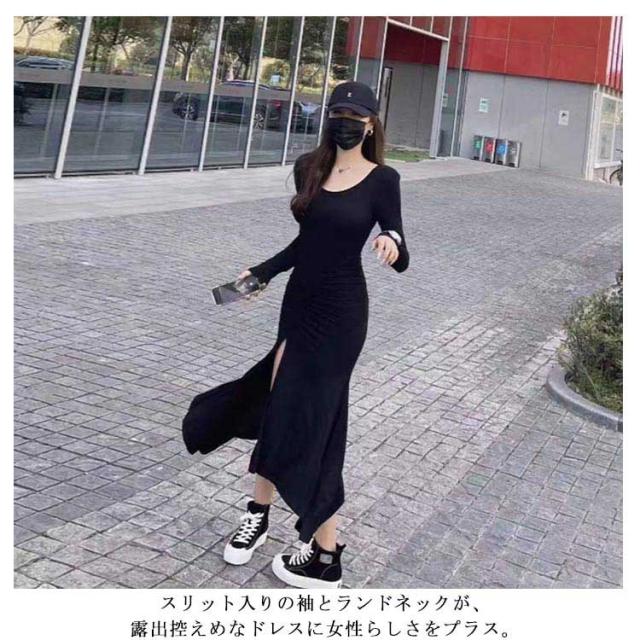 マーメイドスカート マーメイドワンピース 長袖 スリット入り タイトワンピース フレアワンピース ロングワンピース ロングワンピ aラインワンピース ブラック 黒 グレー 灰
