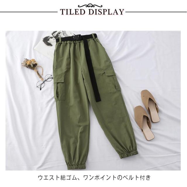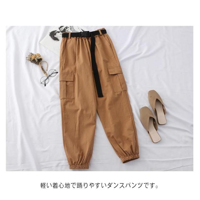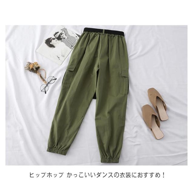 【送料無料 ベルト付き】カーゴパンツ レディース ハイウエスト ストレートパンツ BF風 原宿風 ヒップホップ ダンス衣装 HIPHOP 韓国ファッション カジュアル ゆるい ストリート風