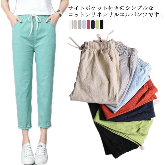 【送料無料】ズボン レディース サルエルパンツ リネン ロングパンツ ボトムス ガジュマルパンツ イージーパンツ コットンリネン 9分丈 大人 ナチュラル ゆったり 体型カバー 大きいサイズ 綿麻 無地