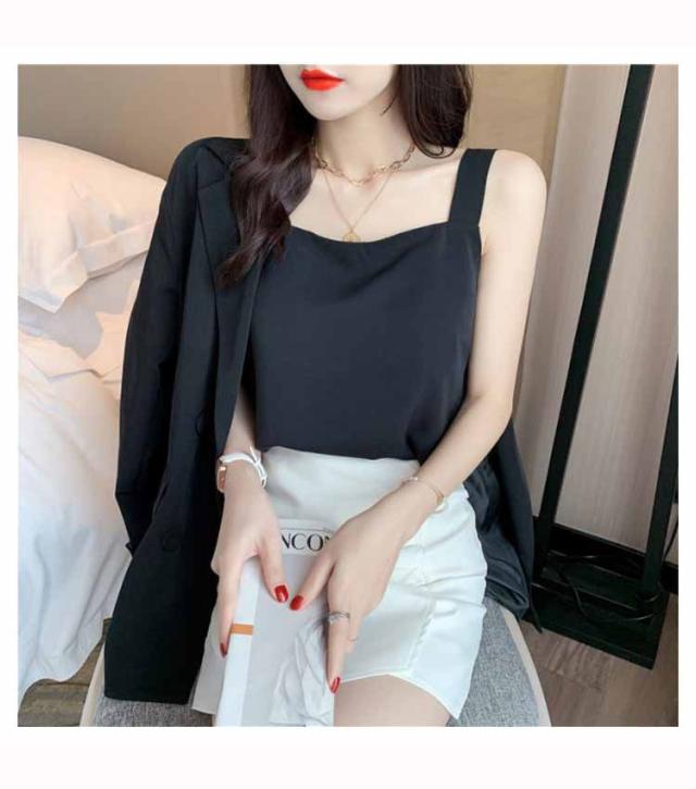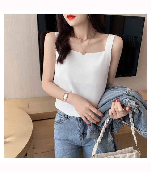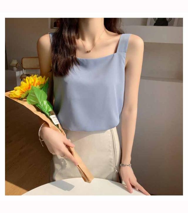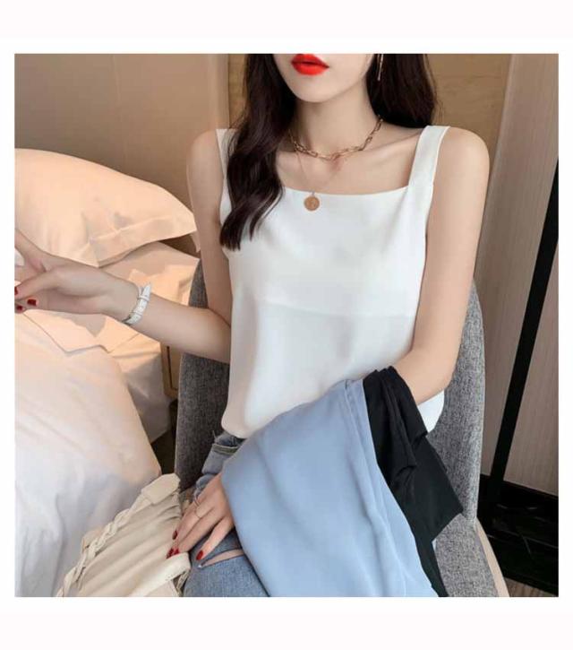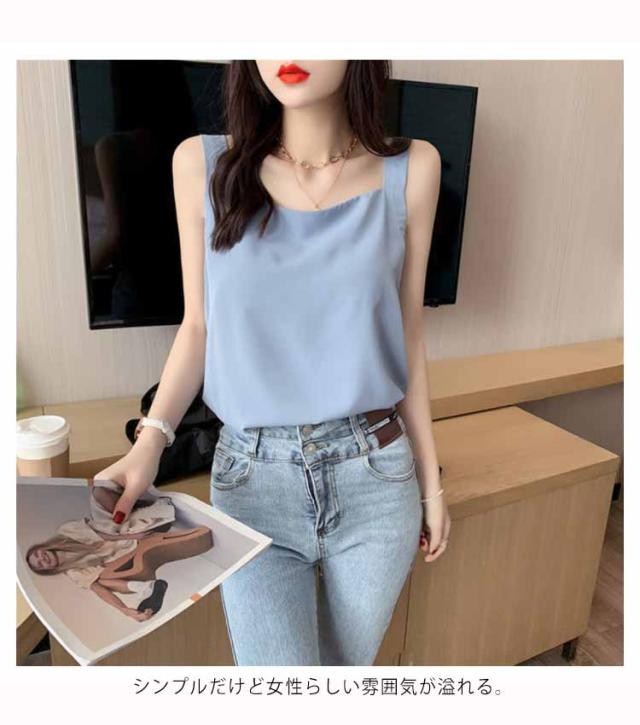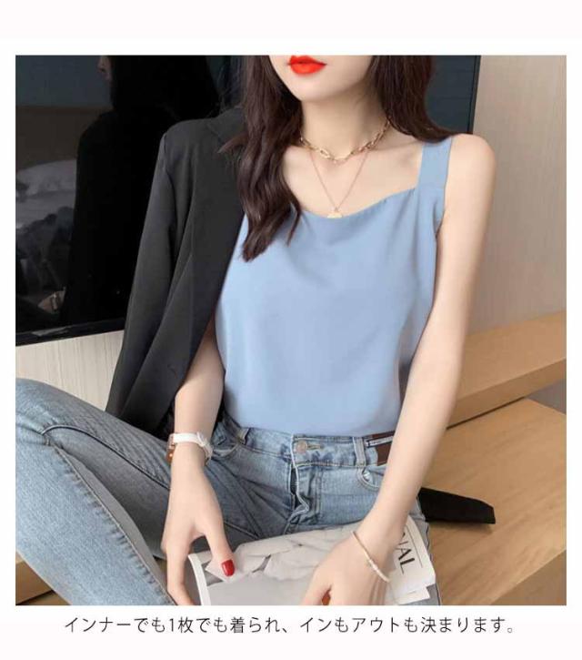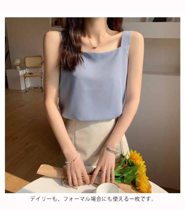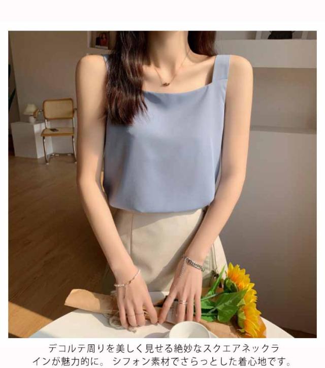 タンクトップ レディース シフォン インナー スクエアネック ノースリーブ おしゃれ フォーマル オフェス 春 夏 秋 ブラック ホワイト ブルー S M L XL 送料無料
