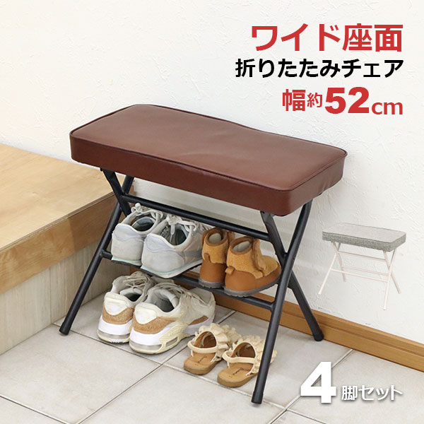 折りたたみチェア 座面が広い椅子 折りたたみ椅子 折り畳み キッチンチェア キッチン椅子 幅51.5cm 奥行33cm 座面高さ45cm 座りやすい スツール ダイニングチェア 玄関 ダイニングベンチ 玄関ベンチ 背もたれなし 作業用 ネイル用 靴収納 ブラウン グレー 完成品 単品