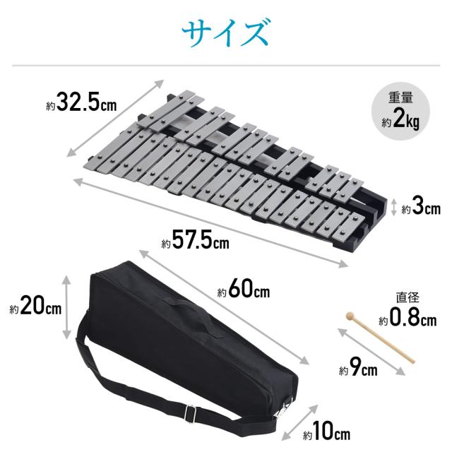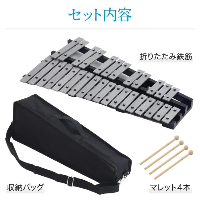 セット内容:折りたたみ鉄琴、収納バッグ、マレット4本