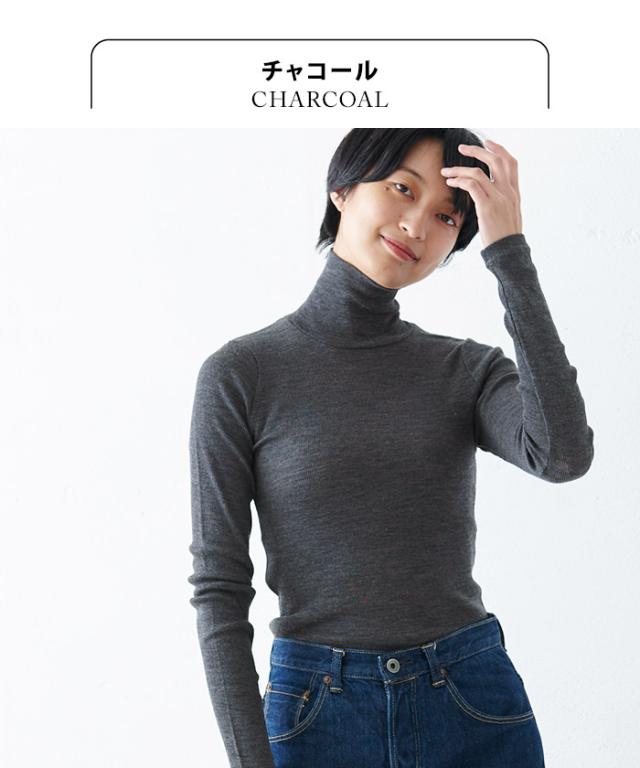 秋 トップス ウール100% インナー タートル タートルネック プルオーバー 日本製 レディース 40代 50代 60代 女性 リブ 薄手 秋 冬 カットソー 長袖 暖かい 黒 ブラック グレー オフホワイト 白