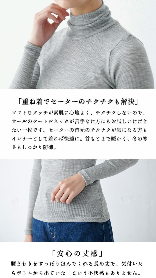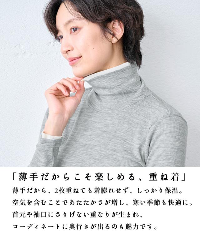 チクチクしない ミラクルウール インナー タートルネック プルオーバー 日本製 / ウール100% タートル レディース 長袖 薄手 防寒 インナー 洗える 40代 50代 60代 30代 女性 リブ リブタートル 暖かい トップス 洗えるウール