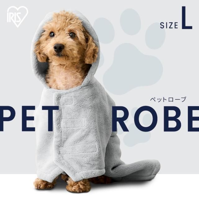 ペットタオル 犬用タオル ペット用バスタオル ペットローブ アイリスオーヤマ * PRB-LGR Lサイズ ミトン付き 拭きやすい 小型犬 猫 シャンプー 雨 からだ拭き ドライタオル サイズ調整 フード付きバスタオル お風呂 散歩 水浴び プール
