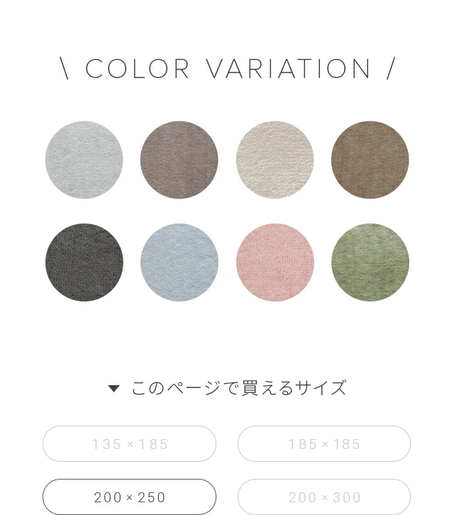 ミストグレー、グレージュ、ミルキーベージュ、ラテブラウン、チャコールグレー、フォグブルー、モーヴピンク、ティーグリーン