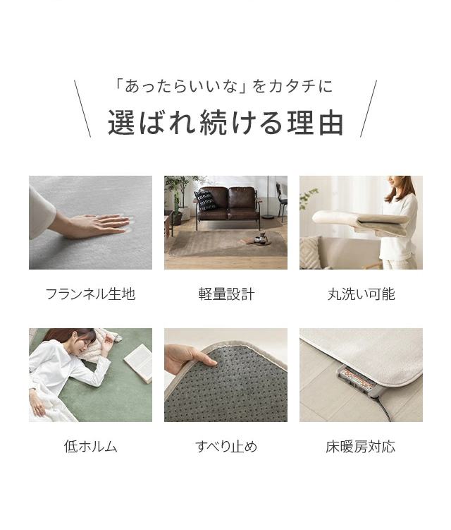 ホットカーペットや床暖房との併用も可能です。足下からの冷気を遮断し寒い季節も快適に。