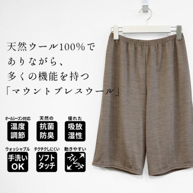 呼吸するウール ペチパンツ 膝丈 日本製 / メリノウール インナー アンダーウェア 40代 50代 60代 女性 メリノウール インナーパンツ ペチコートパンツ マウントブレスウール ウール100% 防寒対策 あったかインナー 透け防止 暖かい タップパンツ 防寒 冬