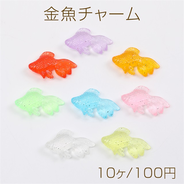 金魚チャーム 錦魚チャーム 樹脂製 立体金魚パーツ ヒレに穴あり ミックスカラー 22×36mm(10ヶ)