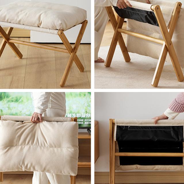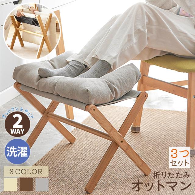 オットマン 足置き台 椅子 3台セット 折りたたみ フットスツール 洗濯 クッション ふわふわ 玄関 ソファ 竹製 脚置き 腰かけ 折り畳み式 軽量 足のせ椅子