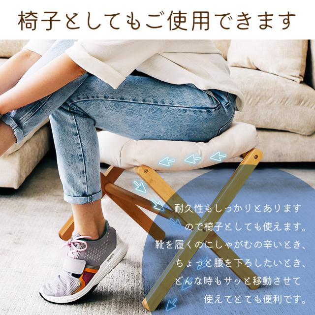 【足置き&椅子の便利なオットマン】座りっぱなしで負担をかけた足腰を癒したり、ちょっとくつろぎタイム、靴のぬぎ履き、椅子として等々、多方面で使える便利なオットマンです。【折りたためて持ち運び楽々】クッションを外してサッとっ畳める、簡単に折りたたんで収納できるデザインです。なので、使わないときはお部屋のスペースを取りません。持ち運びもしやすいのでいろんなところに持ち運んで使えます。