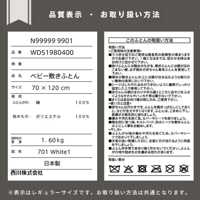 [ keyword | 西川 ベビー 敷布団 日本製 ウェーブ構造 ベビー用 ラジカル敷き布団 ラジカル 敷き布団 ベビー布団 お昼寝布団 敷き布団 レギュラー 70×120cm 西川 無地 オフホワイト 大きめ ]