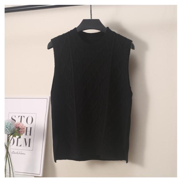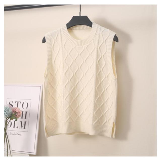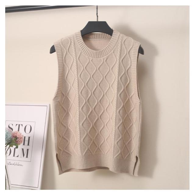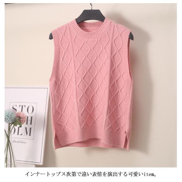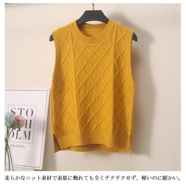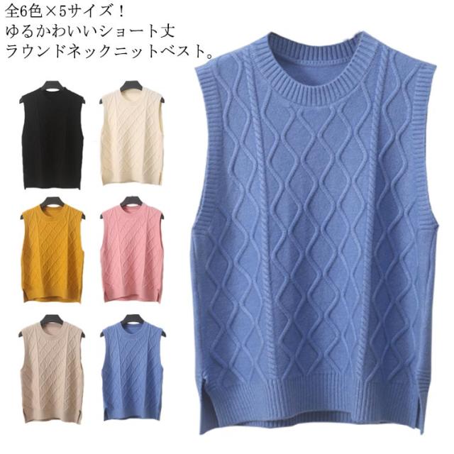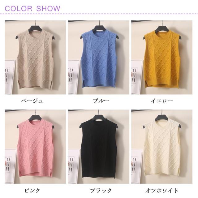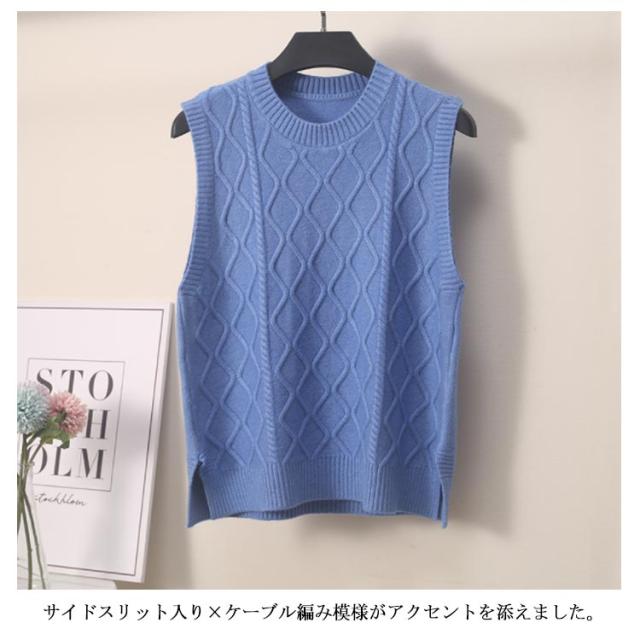 全6色×5サイズ!ラウンドネックニット ニットベスト レディース ノースリーブニット プルオーバー ニット トップス ケーブル編み スリット クルーネック シンプル 無地 カジュアル 春服 秋服
