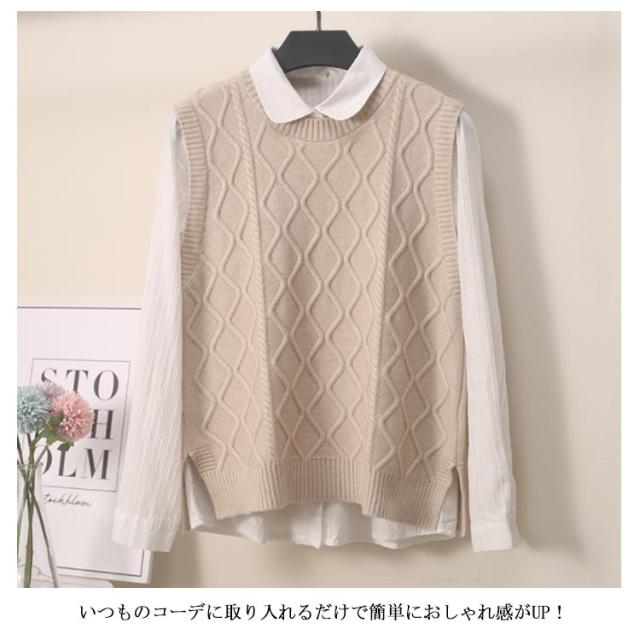 | 全6色×5サイズ!ゆるかわいいショート丈ラウンドネックニットベスト。 いつものコーデに取り入れるだけで簡単におしゃれ感がUP! サイドスリット入り×ケーブル編み模様がアクセントを添えました。 柔らかなニット素材で素肌に触れても全くチクチクせず、軽いのに暖かい。 インナートップス次第で違い表情を演出する可愛いitem。 | |