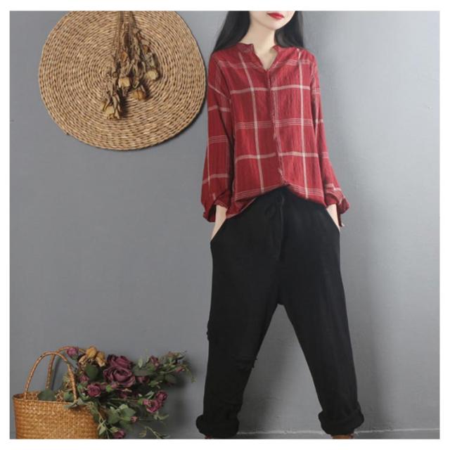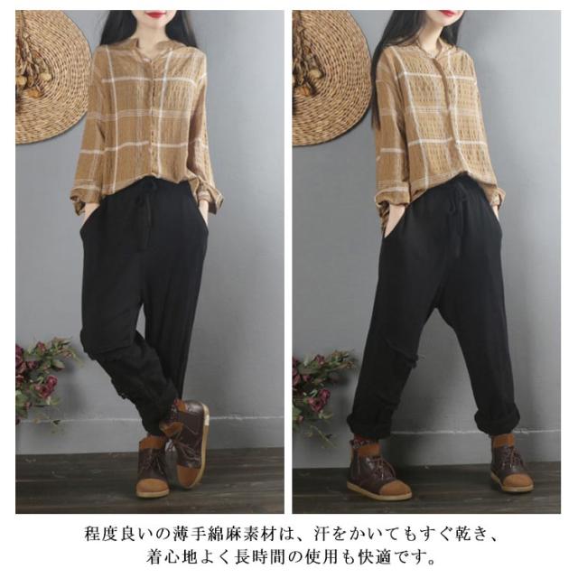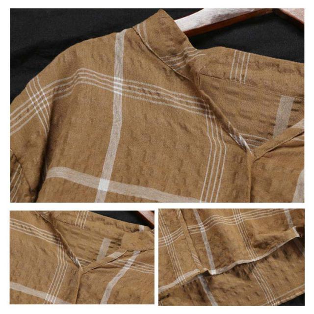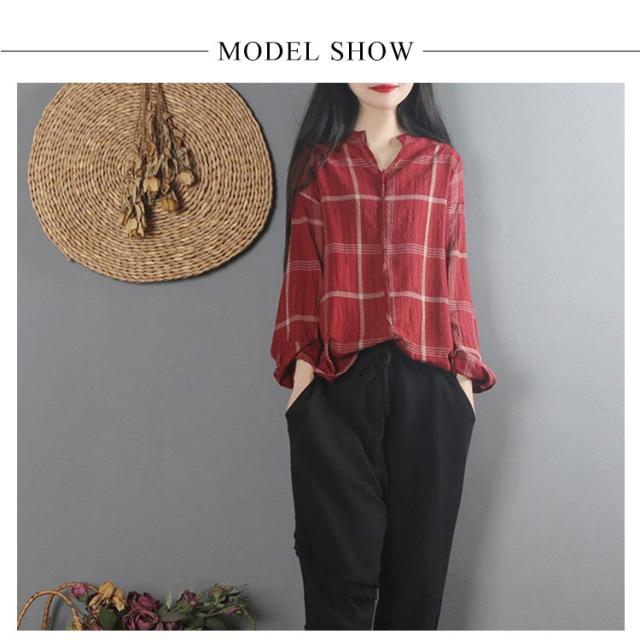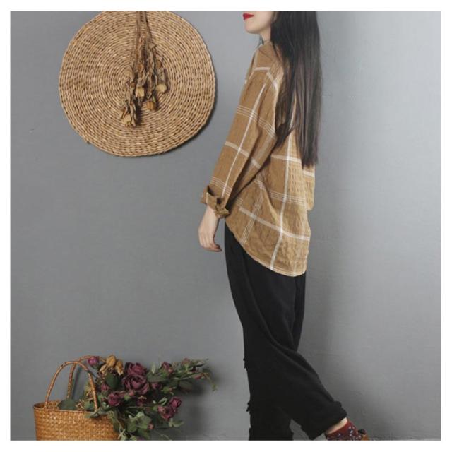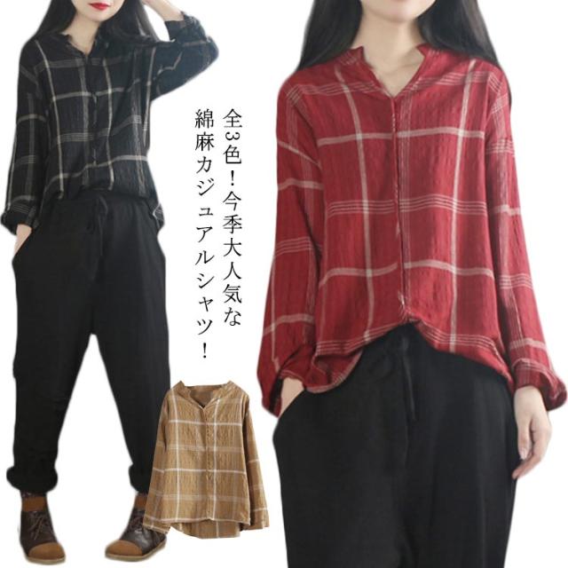 綿麻トップス チェック柄 シャツ トップス レディース チェックシャツ 長袖シャツ 長袖 カジュアルシャツ 薄手 綿麻 麻 麻混 レイヤード 春 夏 おしゃれ 可愛い