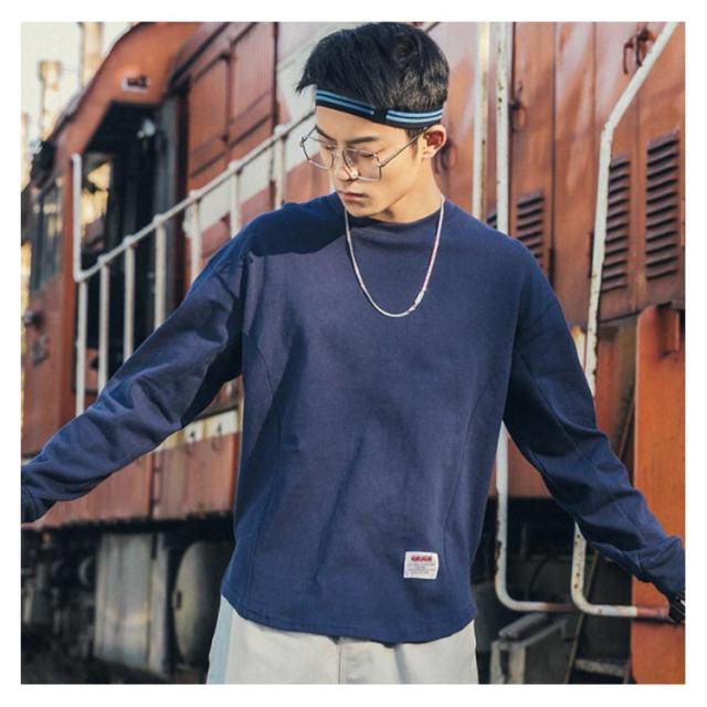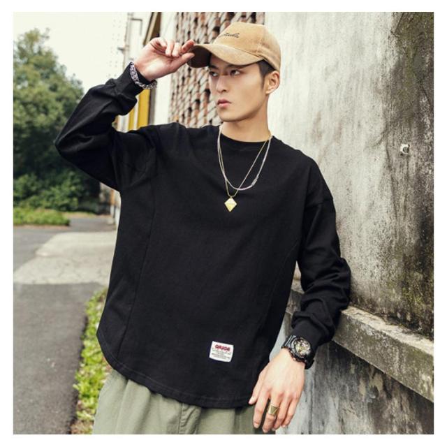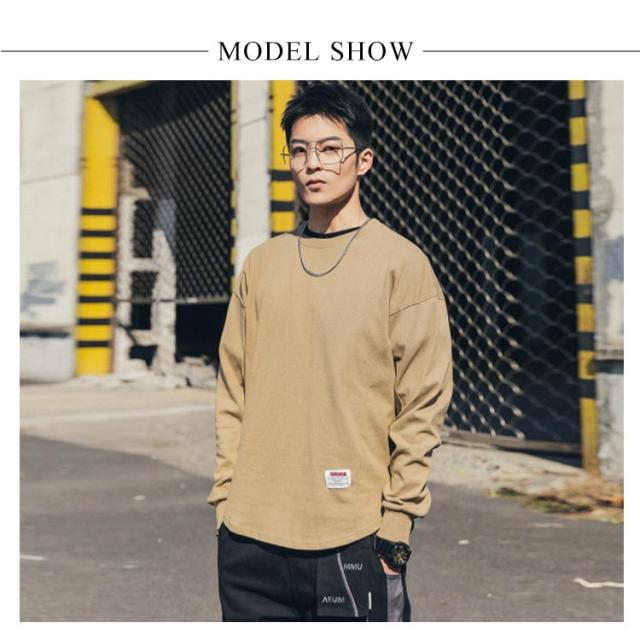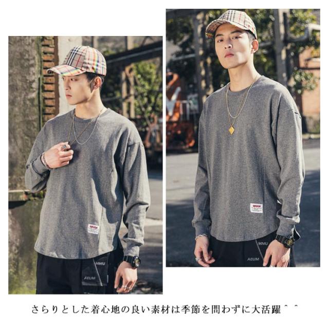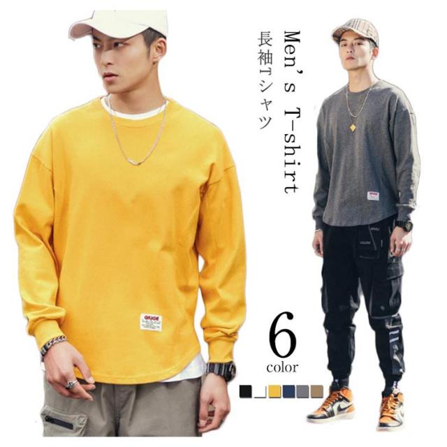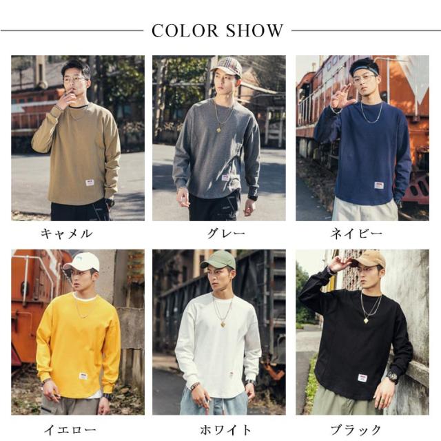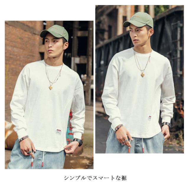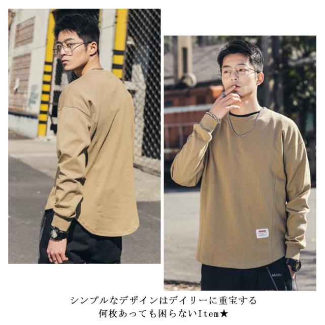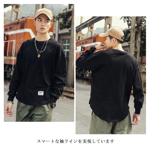 長袖 Tシャツ メンズ ミリタリー風 Tシャツ 長袖 クールネック Uネック 長袖Tシャツ シンプル 無地 カットソー カジュアル